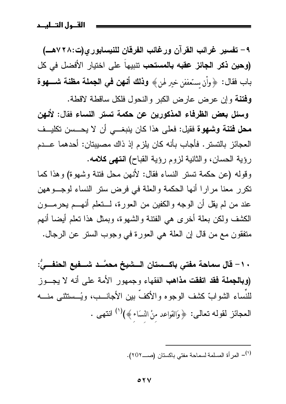 (¬1) المرأة المسلمة لسماحة مفتي باكستان (صـ 202).