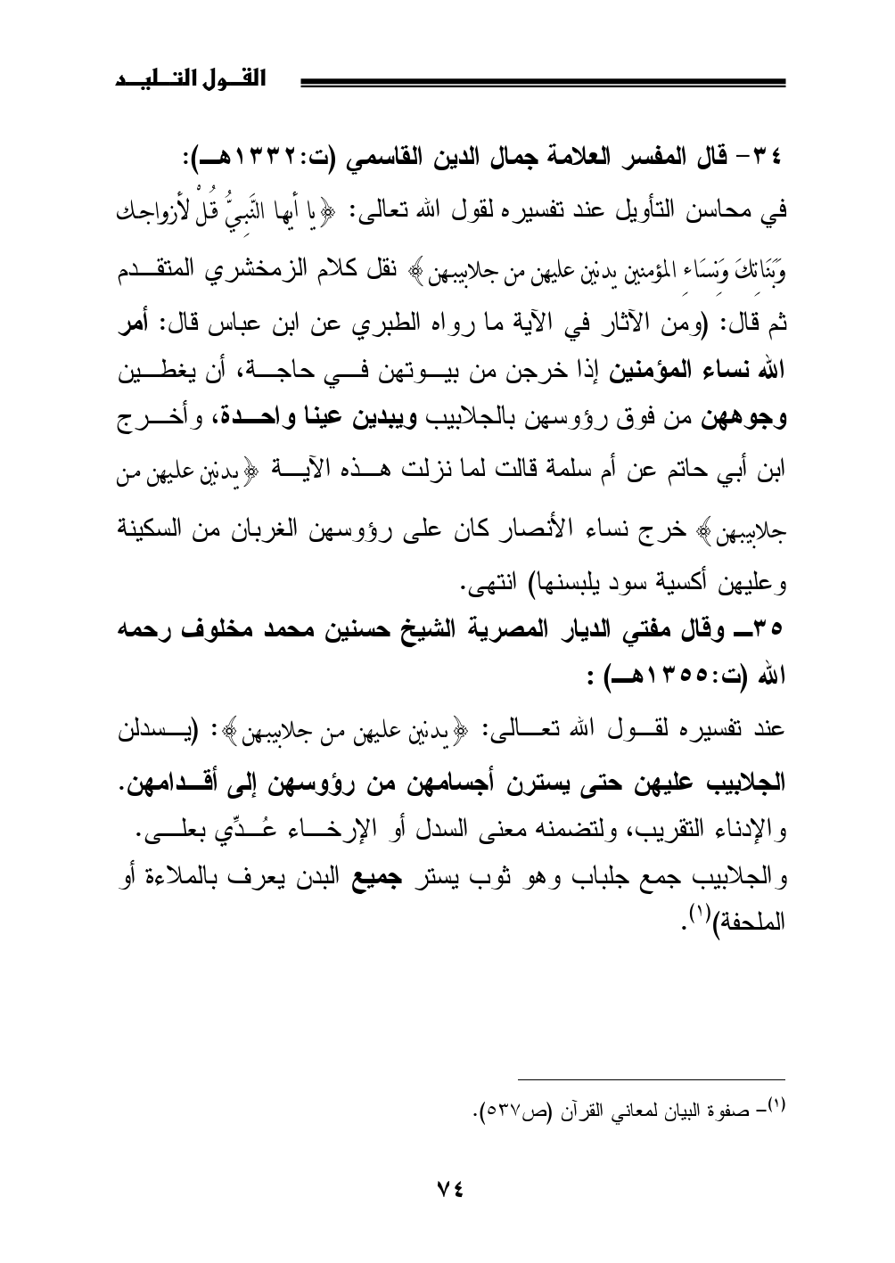 34 - قال المفسر العلامة جمال الدين القاسمي (ت: 1332 هـ):