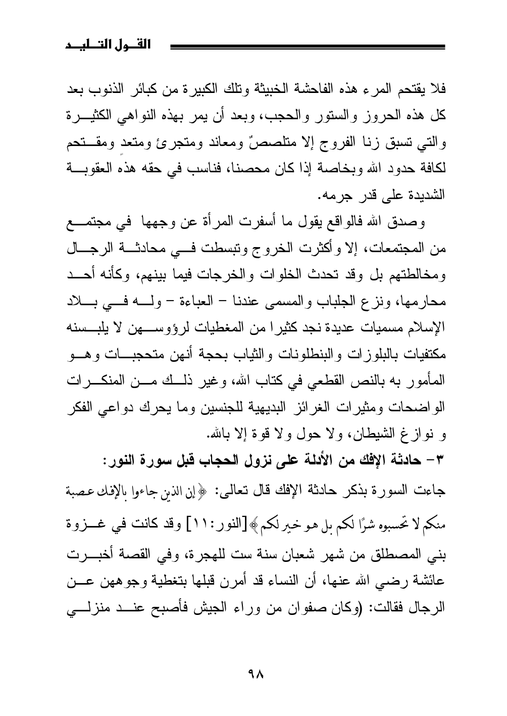 3 - حادثة الإفك من الأدلة على نزول الحجاب قبل سورة النور: