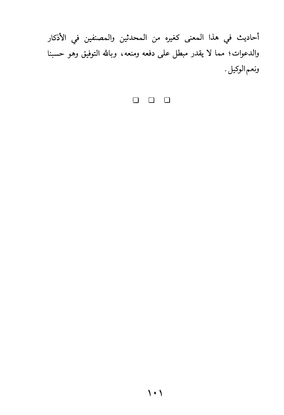 أحاديث في هذا المعنى كغيره من المحدثين والمصنفين في الأذكار والدعوات؛ مما لا يقدر مبطل على دفعه ومنعه، وبالله التوفيق وهو حسبنا ونعم الوكيل.