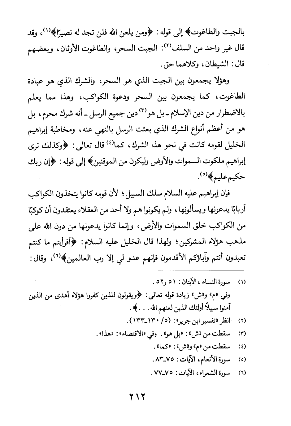 وهؤلاء يجمعون بين الجبت الذي هو السحر، والشرك الذي هو عبادة الطاغوت، كما يجمعون بين السحر ودعوة الكواكب، وهذا مما يعلم بالاضطرار من دين الإسلام –بل هو (3) دين جميع الرسل-أنه شرك محرم، بل