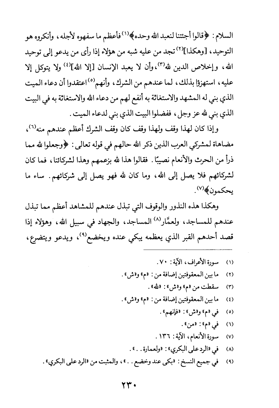 السلام: {قَالُوا أَجِئْتَنَا لِنَعْبُدَ اللَّهَ وَحْدَه} (1) فأعظم ما سفهوه لأجله، وأنكروه هو التوحيد، [وهكذا] (2) تجد من عليه شبه من هؤلاء إذا رأى من يدعو إلى توحيد الله، وإخلاص الدين لله (3) ، وأن لا يعبد الإنسان [إلا الله] (4) ولا يتوكل إلا عليه، استهزؤا بذلك، لما عندهم من الشرك، وأنهم (5) اعتقدوا أن دعاء الميت الذي بني له المشهد والاستغاثة به أنفع لهم من دعاء الله والاستغاثة به في البيت الذي نبي لله عز وجل، ففضلوا البيت الذي بني لدعاء الميت.