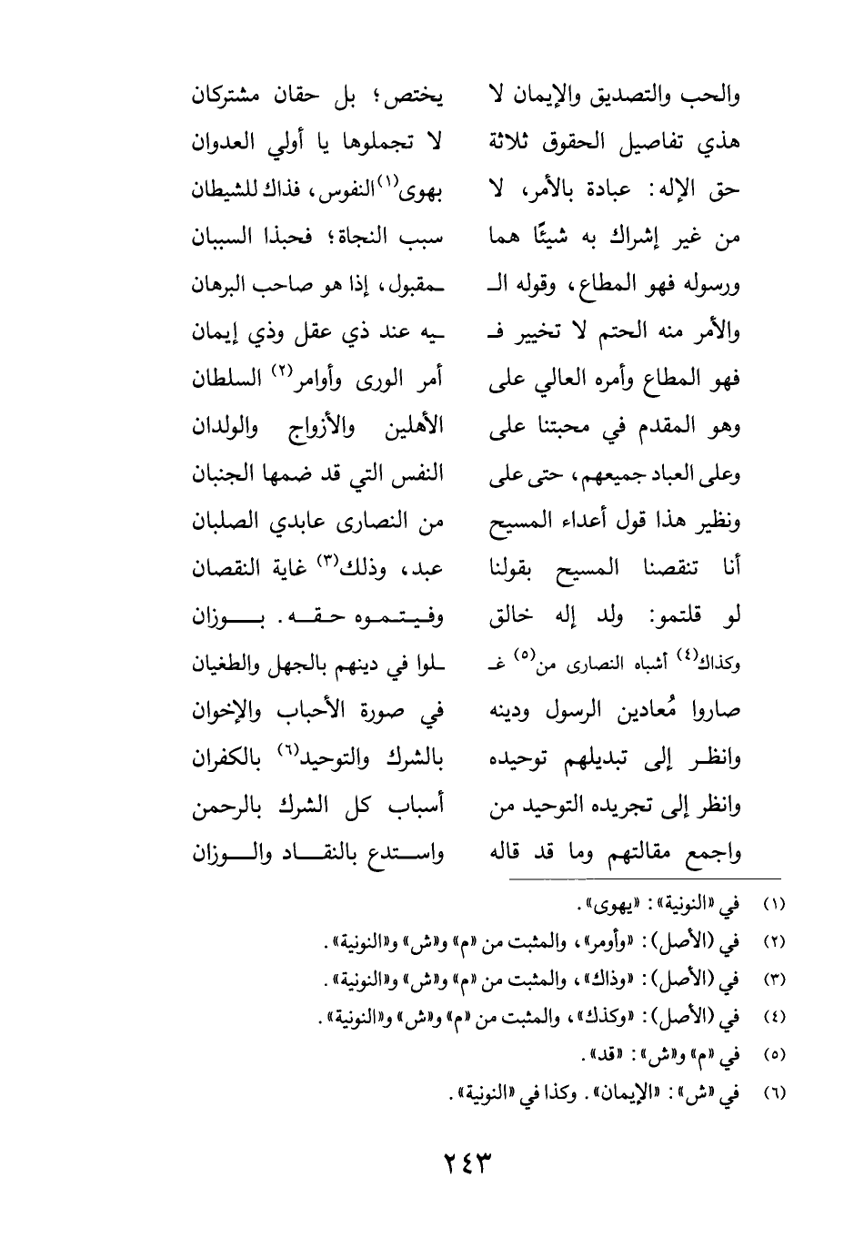 (5) في "ش": "الإيمان". وكذا في "النونية".