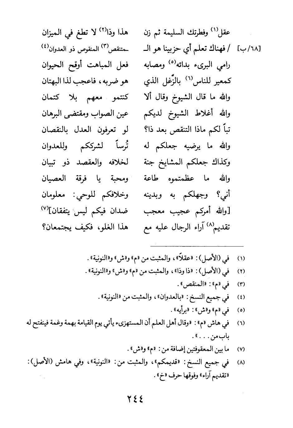 (7) في جميع النسخ: "قديمكم"، والمثبت من: "النونية"، وفي هامش (الأصل) :