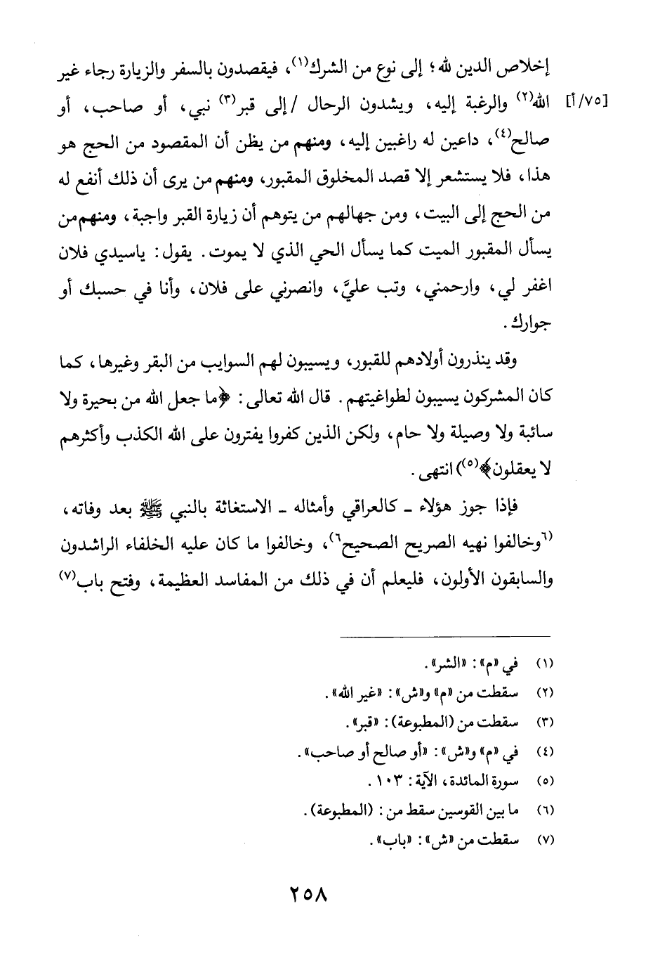فإذا جوز هؤلاء-كالعراقي وأمثاله-الاستغاثة بالنبي صلى الله عليه وسلم بعد وفاته، (6 وخالفوا نهيه الصريح الصحيح 6) (6) ، وخالفوا ما كان عليه الخلفاء الراشدون والسابقون الأولون، فليعلم أن في ذلك من المفاسد العظيمة، وفتح باب (7)