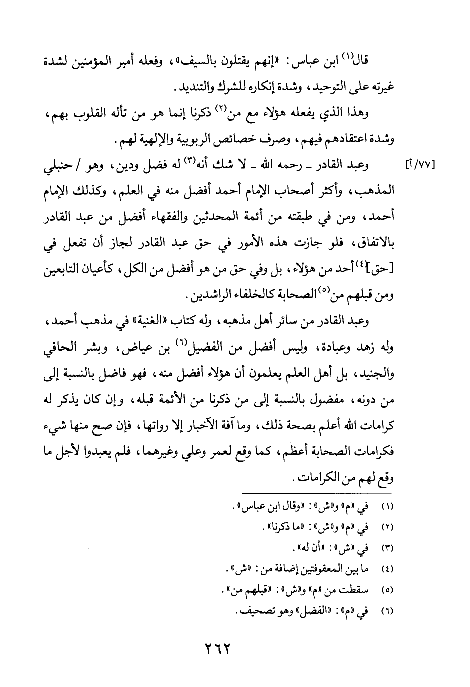 وعبد القادر –رحمه الله –لا شك أنه (3) له فضل ودين، وهو/حنبلي المذهب، وأكثر أصحاب الإمام أحمد أفضل منه في العلم، وكذلك الإمام أحمد، ومن في طبقته من أئمة المحدثين والفقهاء أفضل من عبد القادر بالاتفاق، فلو جازت هذه الأمور في حق عبد القادر لجاز أن تفعل في [حق] (4) أحد من هؤلاء، بل وفي حق من هو أفضل من الكل، كأعيان التابعين ومن قبلهم من (5) الصحابة كالخلفاء الراشدين.