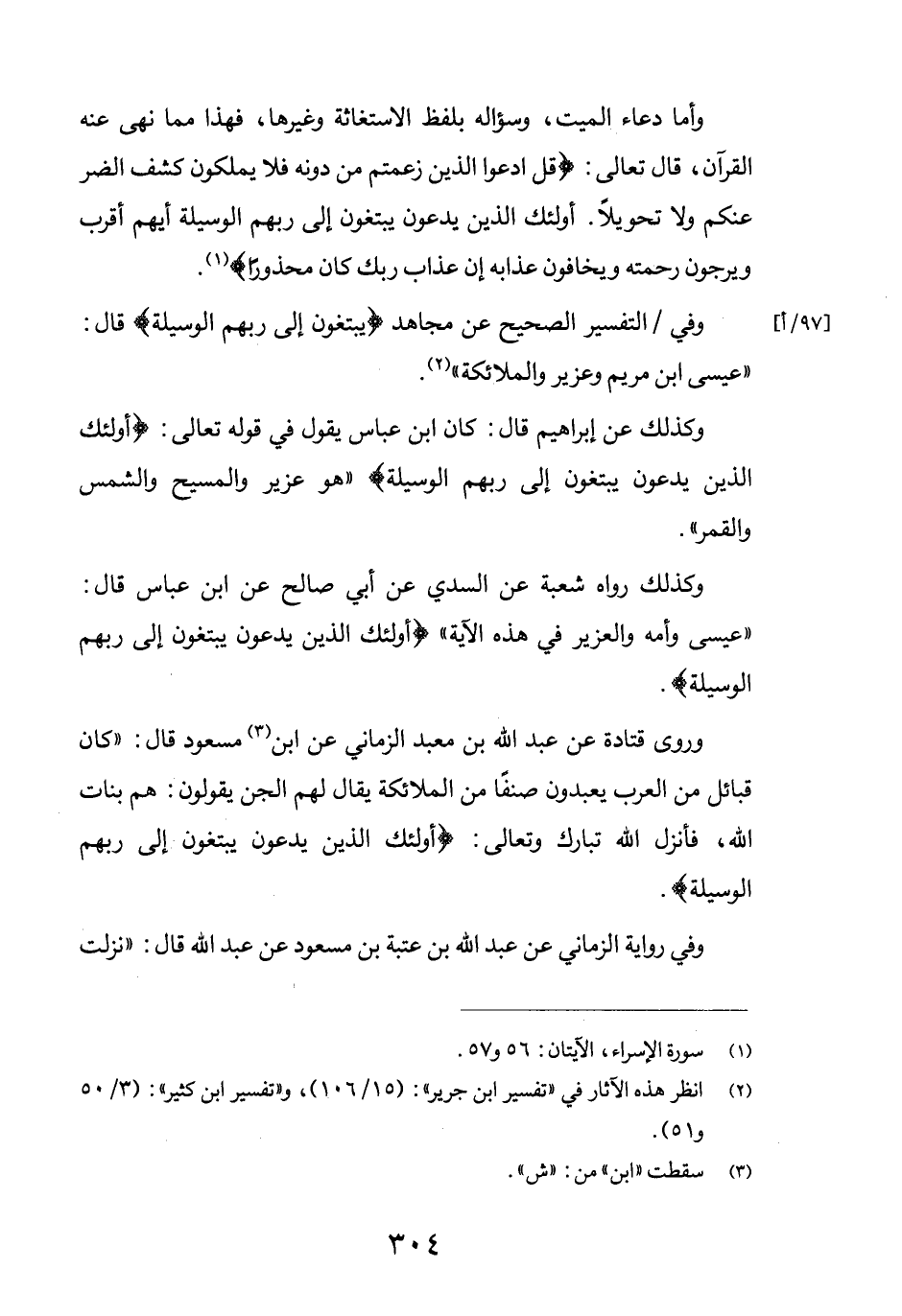 وفي/ التفسير الصحيح عن مجاهد {يَبْتَغُونَ إِلَى رَبِّهِمُ الْوَسِيلَةَ} قال: "عيسى ابن مريم وعزير والملائكة" (2) .