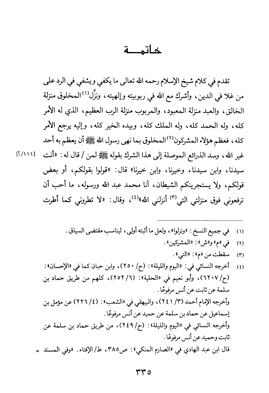 (4) أخرجه النسائي في: "اليوم والليلة": (ح/250) ، وابن حبان كما في "الإحسان": (ح/6207) ، وأبو نعيم في "الحلية": (6/252) ، كلهم من طريق حماد بن سلمة عن ثابت عن أنس مرفوعاً.