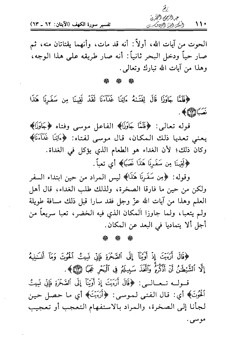 وقوله: (مِنْ سَفَرِنَا هَذَا) ليس المراد من حين ابتداء السفر ولكن من حين ما فارقا الصخرة، ولذلك طلب الغداء، قال أهل العلم وهذا من آيات الله فقد سارا قبل ذلك مسافة طويلة ولم يتعبا، ولما جاوزا المكان الذي فيه الخضر، تعبا سريعاً من أجل ألا يتماديا في البعد عن المكان.
