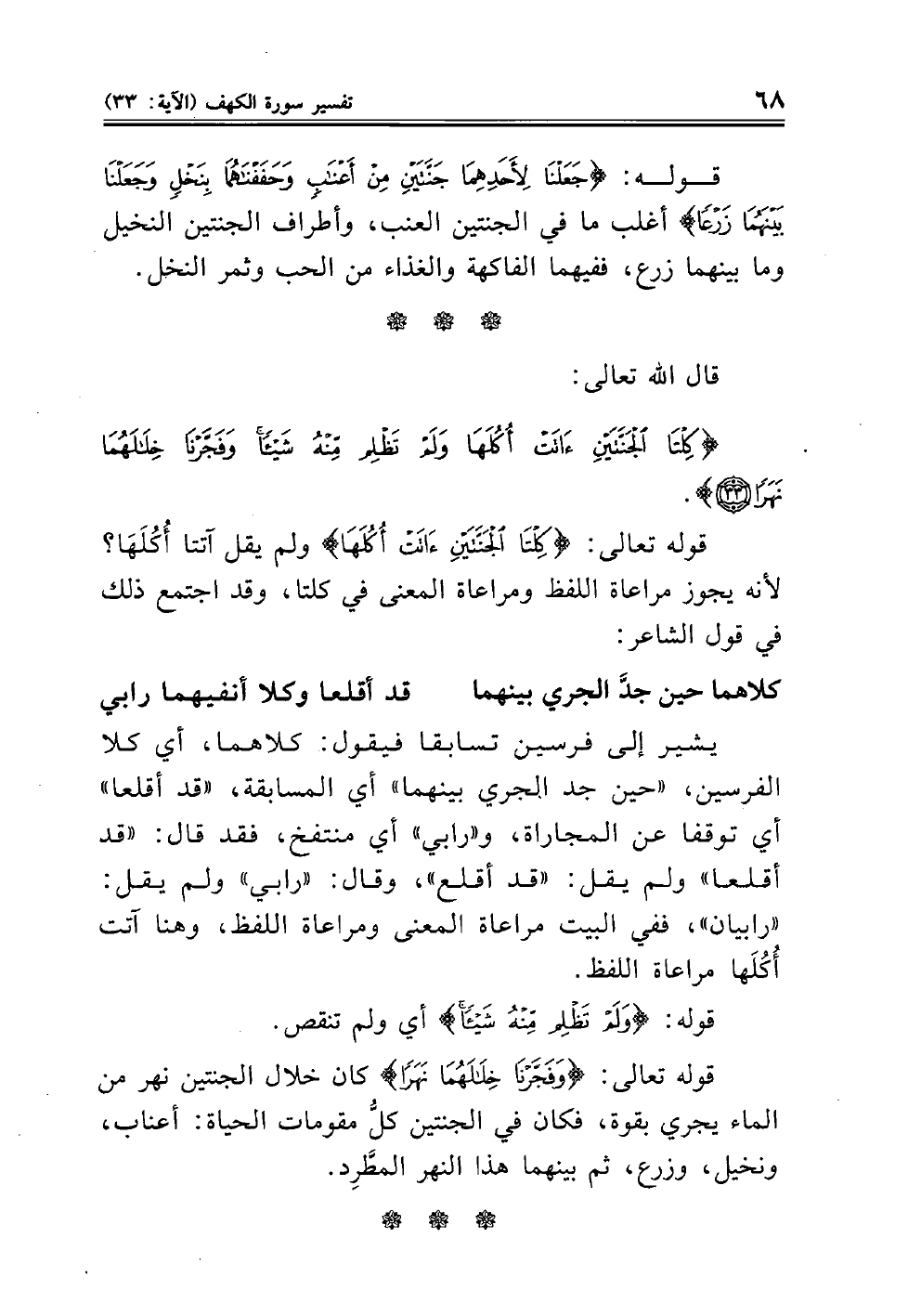 (كِلْتَا الْجَنَّتَيْنِ آتَتْ أُكُلَهَا وَلَمْ تَظْلِمْ مِنْهُ شَيْئاً وَفَجَّرْنَا خِلالَهُمَا نَهَراً) (الكهف: ٣٣)