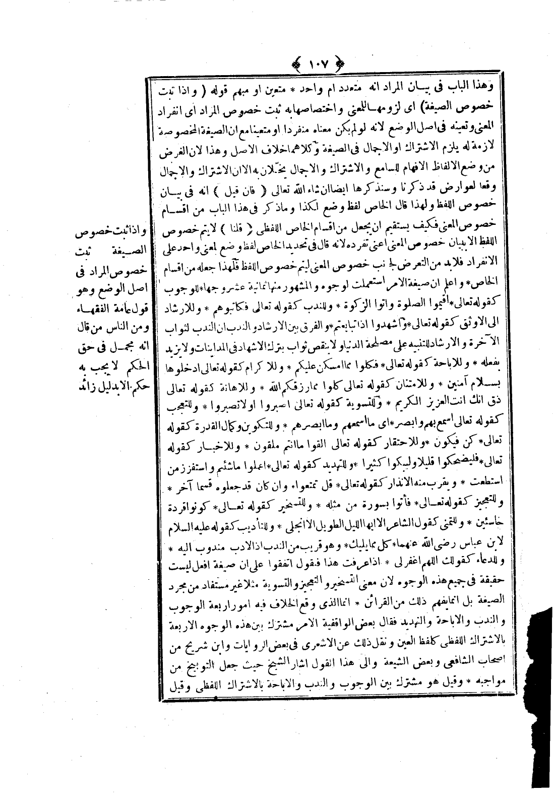 ـــــــــــــــــــــــــــــQوَهَذَا الْبَابُ فِي بَيَانِ الْمُرَادِ أَنَّهُ مُتَعَدِّدٌ أَمْ وَاحِدٌ، مُتَعَيِّنٌ أَوْ مُبْهَمٌ قَوْلُهُ (وَإِذَا ثَبَتَ خُصُوصُ الصِّيغَةِ) أَيْ لُزُومُهَا لِلْمَعْنَى وَاخْتِصَاصُهَا بِهِ ثَبَتَ خُصُوصُ الْمُرَادِ أَيْ انْفِرَادُ الْمَعْنَى وَتَعَيُّنُهُ فِي أَصْلِ الْوَضْعِ؛ لِأَنَّهُ لَوْ لَمْ يَكُنْ مَعْنَاهُ مُنْفَرِدًا أَوْ مُتَعَيِّنًا مَعَ أَنَّ الصِّيغَةَ الْمَخْصُوصَةَ لَازِمَةٌ لَهُ يَلْزَمُ الِاشْتِرَاكُ أَوْ الْإِجْمَالُ فِي الصِّيغَةِ وَكِلَاهُمَا خِلَافُ الْأَصْلِ وَهَذَا؛ لِأَنَّ الْغَرَضَ مِنْ وَضْعِ الْأَلْفَاظِ الْإِفْهَامُ لِلسَّامِعِ وَالِاشْتِرَاكُ وَالْإِجْمَالُ يُخِلَّانِ بِهِ إلَّا أَنَّ الِاشْتِرَاكَ وَالْإِجْمَالَ وَقَعَا لِعَوَارِضَ قَدْ ذَكَرْنَا وَسَنَذْكُرُهَا أَيْضًا إنْ شَاءَ اللَّهُ تَعَالَى (فَإِنْ قِيلَ) إنَّهُ فِي بَيَانِ خُصُوصِ اللَّفْظِ؛ وَلِهَذَا قَالَ: الْخَاصُّ لَفْظٌ وُضِعَ لِكَذَا وَمَا ذُكِرَ فِي هَذَا الْبَابِ مِنْ أَقْسَامِ خُصُوصِ الْمَعْنَى فَكَيْفَ يَسْتَقِيمُ أَنْ يُجْعَلَ مِنْ أَقْسَامِ الْخَاصِّ اللَّفْظِيِّ (قُلْنَا) لَا يَتِمُّ خُصُوصُ اللَّفْظِ إلَّا بِبَيَانِ خُصُوصِ الْمَعْنَى أَعْنِي تَفَرُّدَهُ؛ لِأَنَّهُ قَالَ فِي تَحْدِيدِ الْخَاصِّ لَفْظٌ وُضِعَ لِمَعْنًى وَاحِدٍ عَلَى الِانْفِرَادِ فَلَا بُدَّ مِنْ التَّعَرُّضِ لِجَانِبِ خُصُوصِ الْمَعْنَى لِيَتِمَّ خُصُوصُ اللَّفْظِ؛ فَلِهَذَا جَعَلَهُ مِنْ أَقْسَامِ الْخَاصِّ.