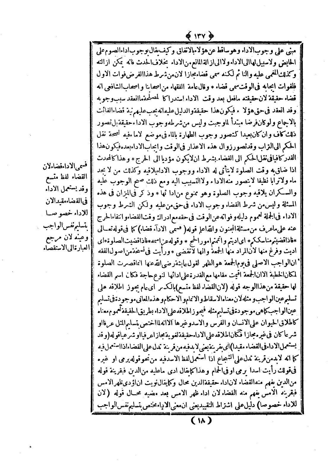 قَوْلُهُ (فَسُمِّيَ الْأَدَاءُ قَضَاءً) كَمَا فِي قَوْله تَعَالَى {فَإِذَا قَضَيْتُمْ مَنَاسِكَكُمْ} [البقرة: 200] أَيْ أَدَّيْتُمْ وَأَتْمَمْتُمْ أُمُورَ الْحَجِّ، وَقَوْلِهِ عَزَّ اسْمُهُ {فَإِذَا قُضِيَتِ الصَّلاةُ} [الجمعة: 10] أَيْ أُدِّيَتْ وَفُرِغَ مِنْهَا؛ لِأَنَّ الْمُرَادَ مِنْهَا الْجُمُعَةُ وَأَنَّهَا لَا تُقْضَى، وَرَأَيْتُ فِي نُسْخَةٍ مِنْ أُصُولِ الْفِقْهِ أَنَّ الْوَاجِبَ الْأَصْلِيَّ فِي يَوْمِ الْجُمُعَةِ هُوَ الظُّهْرُ لِقَوْلِ عَائِشَةَ - رَضِيَ اللَّهُ عَنْهَا - إنَّمَا قَصُرَتْ الصَّلَاةُ لِمَكَانِ الْخُطْبَةِ إلَّا أَنَّ الْجُمُعَةَ أُقِيمَتْ مَقَامَهَا مَعَ الْقُدْرَةِ عَلَى أَدَائِهَا لِنَوْعِ حَاجَةٍ فَكَانَ اسْمُ الْقَضَاءِ لَهَا حَقِيقَةً مِنْ هَذَا الْوَجْهِ قَوْلُهُ.