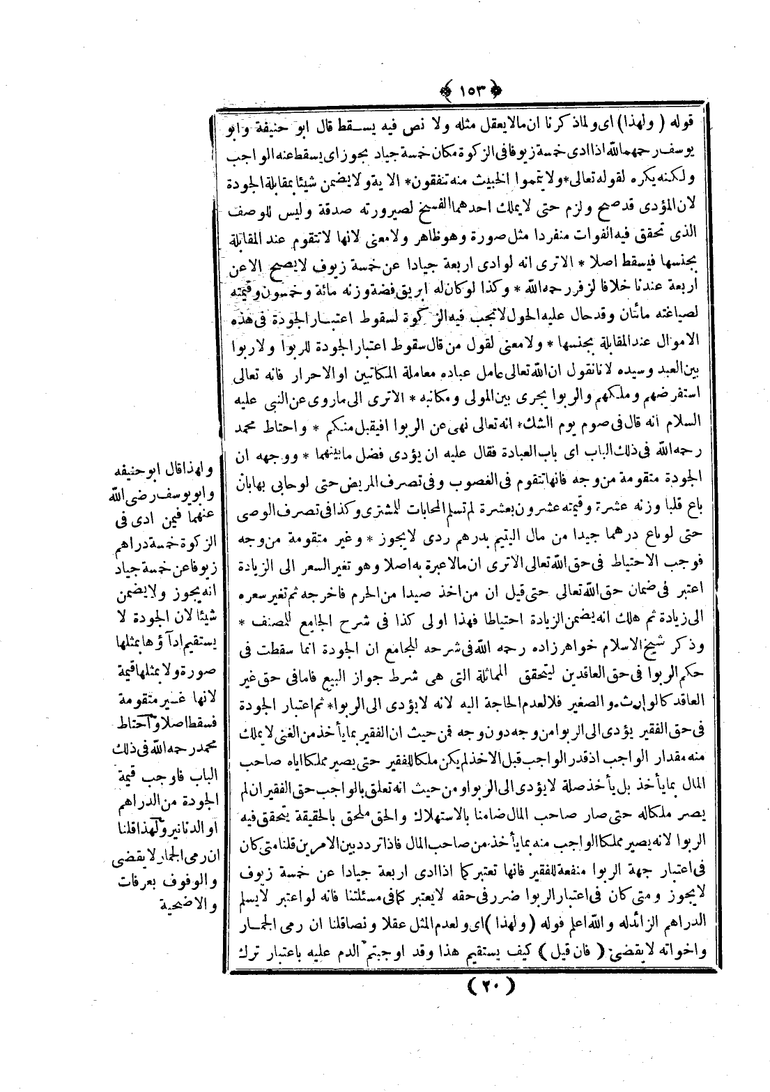 وَذَكَرَ شَيْخُ الْإِسْلَامِ خُوَاهَرْ زَادَهْ - رَحِمَهُ اللَّهُ - فِي شَرْحِهِ لِلْجَامِعِ أَنَّ الْجَوْدَةَ إنَّمَا سَقَطَتْ فِي حُكْمِ الرِّبَا فِي حَقِّ الْعَاقِدِينَ لِيَتَحَقَّقَ الْمُمَاثَلَةُ الَّتِي هِيَ شَرْطُ جَوَازِ الْبَيْعِ فَأَمَّا فِي حَقِّ غَيْرِ الْعَاقِدِ كَالْوَارِثِ وَالصَّغِيرِ فَلَا لِعَدَمِ الْحَاجَةِ إلَيْهِ؛ لِأَنَّهُ لَا يُؤَدِّي إلَى الرِّبَا، ثُمَّ اعْتِبَارُ الْجَوْدَةِ فِي حَقِّ الْفَقِيرِ يُؤَدِّي إلَى الرِّبَا وَجْهٌ دُونَ وَجْهٍ فَمِنْ حَيْثُ إنَّ الْفَقِيرَ بِمَا يَأْخُذُ مِنْ الْغَنِيِّ لَا يَمْلِكُ مِنْهُ مِقْدَارَ الْوَاجِبِ إذْ قَدْرُ الْوَاجِبِ قَبْلَ الْأَخْذِ لَمْ يَكُنْ مِلْكًا لِلْفَقِيرِ حَتَّى يَصِيرَ مُمَلِّكًا إيَّاهُ صَاحِبَ الْمَالِ بِمَا يَأْخُذُ بَلْ يَأْخُذُ صِلَةً لَا يُؤَدِّي إلَى الرِّبَا، وَمِنْ حَيْثُ إنَّهُ تَعَلَّقَ بِالْوَاجِبِ حَقُّ الْفَقِيرِ إنْ لَمْ يَصِرْ مِلْكًا لَهُ حَتَّى صَارَ صَاحِبُ الْمَالِ ضَامِنًا بِالِاسْتِهْلَاكِ وَالْحَقُّ مُلْحَقٌ بِالْحَقِيقَةِ يَتَحَقَّقُ فِيهِ الرِّبَا؛ لِأَنَّهُ يَصِيرُ مُمَلَّكًا الْوَاجِبَ مِنْهُ بِمَا يَأْخُذُ مِنْ صَاحِبِ الْمَالِ، فَإِذَا تَرَدَّدَ بَيْنَ الْأَمْرَيْنِ قُلْنَا مَتَى كَانَ فِي اعْتِبَارِ جِهَةِ الرِّبَا مَنْفَعَةٌ لِلْفَقِيرِ فَإِنَّهَا تُعْتَبَرُ كَمَا إذَا أَدَّى أَرْبَعَةً جِيَادًا عَنْ خَمْسَةٍ زُيُوفٍ لَا يَجُوزُ وَمَتَى كَانَ فِي اعْتِبَارِ الرِّبَا ضَرَرٌ فِي حَقِّهِ لَا يُعْتَبَرُ كَمَا فِي مَسْأَلَتِنَا فَإِنَّهُ لَوْ اُعْتُبِرَ لَا يُسَلِّمُ الدَّرَاهِمَ الزَّائِدَةَ وَاَللَّهُ أَعْلَمُ.