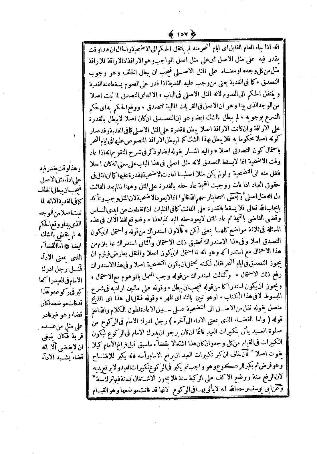 ـــــــــــــــــــــــــــــQأَنَّهُ إذَا جَاءَ الْقَابِلُ أَيْ أَيَّامُ النَّحْرِ مِنْهُ لَمْ يَنْتَقِلْ الْحُكْمُ إلَى الْأُضْحِيَّةِ وَالْحَالُ أَنَّ هَذَا وَقْتٌ يُقَدَّرُ فِيهِ عَلَى مِثْلِ الْأَصْلِ أَيْ عَلَى مِثْلِ أَصْلِ الْوَاجِبِ وَهُوَ الْإِرَاقَةُ إذْ الْإِرَاقَةُ لِلْإِرَاقَةِ مِثْلٌ مِنْ كُلِّ وَجْهٍ، أَوْ مَعْنَاهُ عَلَى الْمِثْلِ الْأَصْلِيِّ فَيَجِبُ أَنْ يَبْطُلَ الْخَلَفُ وَهُوَ وُجُوبُ التَّصَدُّقِ، كَمَا فِي الْفِدْيَةِ يَعْنِي مَنْ وَجَبَ عَلَيْهِ الْفِدْيَةُ إذَا قَدَرَ عَلَى الصَّوْمِ يَسْقُطُ عَنْهُ الْفِدْيَةُ وَيَنْتَقِلُ الْحُكْمُ إلَى الصَّوْمِ؛ لِأَنَّهُ الْمِثْلُ الْأَصْلِيُّ فِي الْبَابِ، إلَّا أَنَّهُ أَيْ التَّصَدُّقَ لَمَّا ثَبَتَ أَصْلًا مِنْ الْوَجْهِ الَّذِي بَيَّنَّا وَهُوَ أَنَّ الْأَصْلَ فِي الْقُرُبَاتِ الْمَالِيَّةِ التَّصَدُّقُ، وَوَقَعَ الْحُكْمُ بِهِ أَيْ حُكْمُ الشَّرْعِ بِوُجُوبِهِ، لَمْ يَبْطُلْ بِالشَّكِّ أَيْضًا وَهُوَ أَنَّ التَّصَدُّقَ إنْ كَانَ أَصْلًا لَا يَبْطُلُ بِالْقُدْرَةِ عَلَى الْإِرَاقَةِ، وَإِنْ كَانَتْ الْإِرَاقَةُ أَصْلًا يَبْطُلُ لِلْقُدْرَةِ عَلَى الْمِثْلِ الْأَصْلِيِّ كَمَا فِي الْفِدْيَةِ وَقَدْ صَارَ كَوْنُهُ أَصْلًا مَحْكُومًا بِهِ فَلَا يَبْطُلُ بِهَذَا الشَّكِّ كَمَا لَمْ يُبْطِلْ الْإِرَاقَةَ الْمَنْصُوصَ عَلَيْهَا فِي أَيَّامِ النَّحْرِ بِاحْتِمَالِ كَوْنِ التَّصَدُّقِ أَصْلًا.