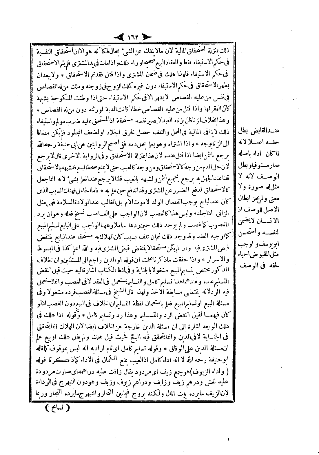 وَقَوْلُهُ إذَا هَلَكَ فِي ذَلِكَ الْوَجْهِ إشَارَةٌ إلَى أَنَّ مَسْأَلَةَ الدَّيْنِ خَارِجَةٌ عَنْ الْخِلَافِ أَيْضًا؛ لِأَنَّ الْهَلَاكَ إنَّمَا يَتَحَقَّقُ فِي الْجِنَايَةِ لَا فِي الدَّيْنِ وَإِنَّمَا يَتَحَقَّقُ فِيهِ الْبَيْعُ فَحَيْثُ قِيلَ هَلَكَ وَلَمْ يَقُلْ هَلَكَ أَوْ بِيعَ عُلِمَ أَنَّ مَسْأَلَةَ الدَّيْنِ عَلَى الْوِفَاقِ، وَقَوْلُهُ تَسْلِيمٌ كَامِلٌ أَيْ تَامٌّ أَرَادَ بِهِ لَيْسَ بِمَوْقُوفٍ كَمَا قَالَهُ أَبُو حَنِيفَةَ - رَحِمَهُ اللَّهُ - لَا أَنَّهُ أَدَاءٌ كَامِلٌ؛ إذْ الْعَيْبُ يَمْنَعُ الْكَمَالَ فِي الْأَدَاءِ كَمَا ذَكَرْنَا قَوْلَهُ (وَأَدَاءُ الزُّيُوفِ) هُوَ جَمْعُ زَيْفٍ أَيْ مَرْدُودٌ يُقَالُ زَافَتْ عَلَيْهِ دَرَاهِمُهُ أَيْ صَارَتْ مَرْدُودَةً عَلَيْهِ لِغِشٍّ وَدِرْهَمٌ زَيْفٌ وَزَائِفٌ وَدَرَاهِمُ زُيُوفٌ وَزَيْفٌ وَهُوَ دُونَ النَّبَهْرَجِ فِي الرَّدَاءَةِ؛ لِأَنَّ الزَّيْفَ مَا يَرُدُّهُ بَيْتُ الْمَالِ وَلَكِنَّهُ يُرَوَّجُ فِيمَا بَيْنَ التُّجَّارِ وَالنَّبَهْرَجُ مَا يَرُدُّهُ التُّجَّارُ وَرُبَّمَا