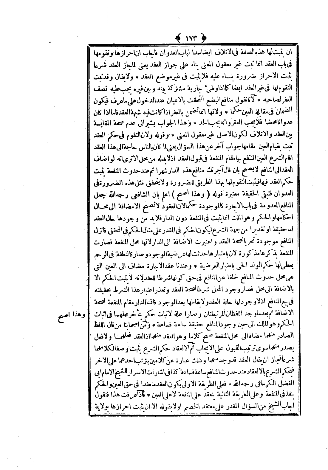 فَعَلَى الطَّرِيقَةِ الْأُولَى يَكُونُ الْعَقْدُ مُنْعَقِدًا فِي حَقِّ الْعَيْنِ وَالْحُكْمُ يَنْفُذُ فِي الْمَنْفَعَةِ وَعَلَى الطَّرِيقَةِ الثَّانِيَةِ يَنْعَقِدُ عَلَى الْمَنْفَعَةِ لَا عَلَى الْعَيْنِ، فَإِذَا عَرَفْت هَذَا فَنَقُولُ أَجَابَ الشَّيْخُ عَنْ السُّؤَالِ الْمُقَدَّرِ عَلَى مُعْتَقِدِ الْخَصْمِ أَوَّلًا بِقَوْلِهِ إلَّا أَنْ يَثْبُتَ إحْرَازُهَا بِوِلَايَةِ