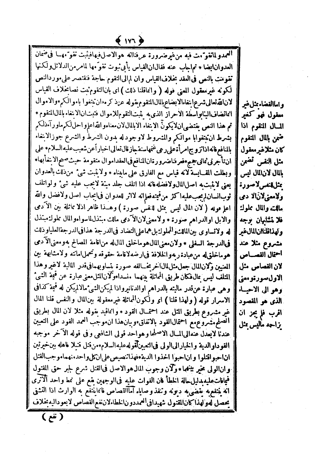 ـــــــــــــــــــــــــــــQالْعَمْدِ وَلَمَّا تَقَوَّمَتْ فِيهِ مِنْ غَيْرِ ضَرُورَةٍ عَرَفْنَا أَنَّهُ هُوَ الْأَصْلُ فِيهَا فَيَثْبُتُ تَقَوُّمُهَا فِي ضَمَانِ الْعُدْوَانِ أَيْضًا، ثُمَّ أَجَابَ عَنْهُ فَقَالَ: إنَّ الْقِيَاسَ يَأْبَى ثُبُوتَ تَقَوُّمِهَا لِمَا مَرَّ مِنْ الدَّلَائِلِ وَلَكِنَّهَا تَقَوَّمَتْ بِالنَّصِّ فِي الْعَقْدِ بِخِلَافِ الْقِيَاسِ وَإِنْ لَمْ يَكُنْ إلَى التَّقَوُّمِ حَاجَةٌ فَنَقْتَصِرُ عَلَى مَوْرِدِ النَّصِّ لِكَوْنِهِ غَيْرَ مَعْقُولِ الْمَعْنَى.