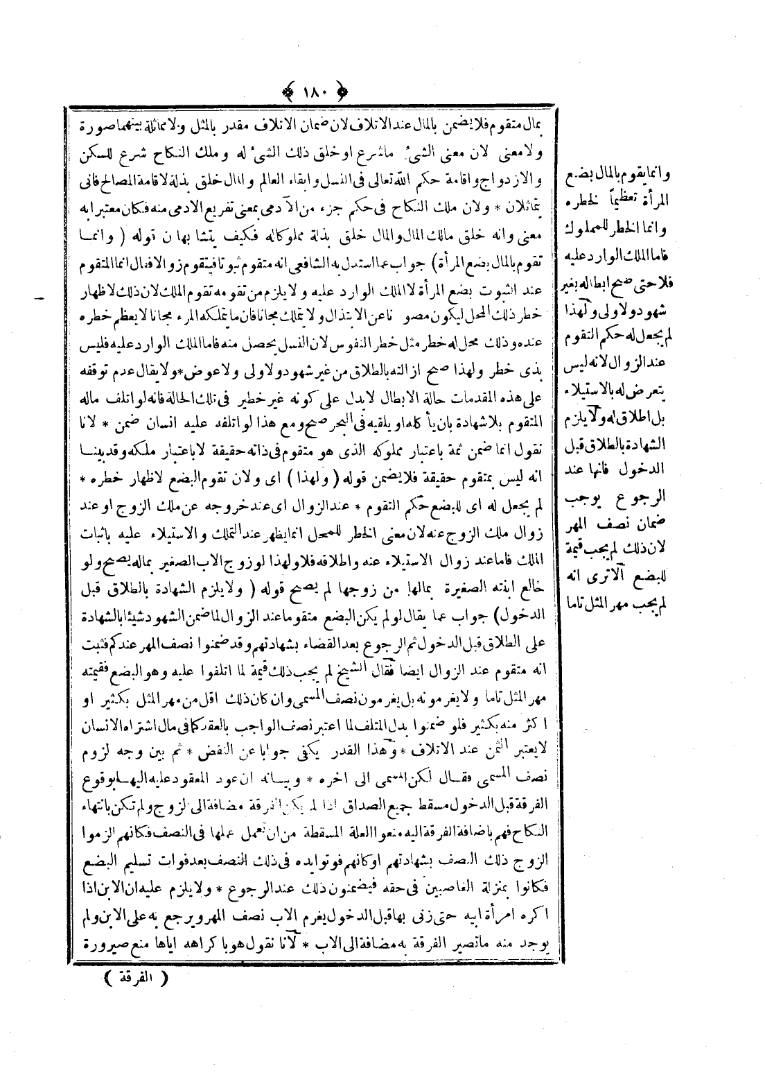 وَإِنَّمَا يُقَوَّمُ بِالْمَالِ بُضْعُ الْمَرْأَةِ تَعْظِيمًا لِخَطَرِهِ وَإِنَّمَا الْخَطَرُ لِلْمَمْلُوكِ فَأَمَّا الْمِلْكُ الْوَارِدُ عَلَيْهِ فَلَا، حَتَّى صَحَّ إبْطَالُهُ بِغَيْرِ شُهُودٍ وَلَا وَلِيٍّ وَلِهَذَا لَمْ يُجْعَلْ لَهُ حُكْمُ التَّقَوُّمِ عِنْدَ الزَّوَالِ؛ لِأَنَّهُ لَيْسَ يُتَعَرَّضُ لَهُ بِالِاسْتِيلَاءِ بَلْ إطْلَاقٌ لَهُ وَلَا يَلْزَمُ الشَّهَادَةَ بِالطَّلَاقِ قَبْلَ الدُّخُولِ فَإِنَّهَا عِنْدَ الرُّجُوعِ يُوجِبُ ضَمَانَ نِصْفِ الْمَهْرِ؛ لِأَنَّ ذَلِكَ لَمْ يُجِبْ قِيمَةً لِلْبُضْعِ أَلَا تَرَى أَنَّهُ لَمْ يُجِبْ مَهْرَ الْمِثْلِ تَامًّا
