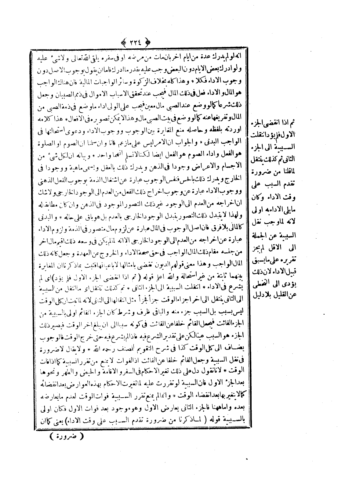 قَوْلُهُ (لِمَا ذَكَرْنَا مِنْ ضَرُورَةِ تَقَدُّمِ السَّبَبِ عَلَى وَقْتِ الْأَدَاءِ) يَعْنِي كَمَا أَنَّ