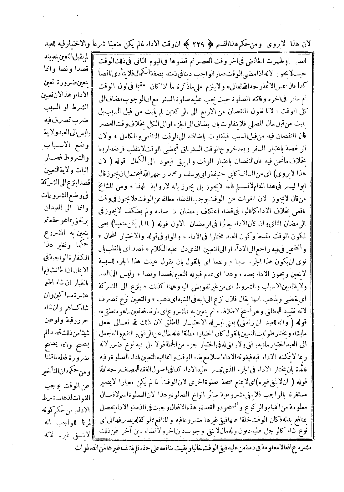 لِأَنَّ هَذَا لَا يُرْوَى وَمِنْ حُكْمِ هَذَا الْقِسْمِ أَنَّ وَقْتَ الْأَدَاءِ لَمَّا لَمْ يَكُنْ مُتَعَيَّنًا شَرْعًا وَالِاخْتِيَارُ فِيهِ لِلْعَبْدِ لَمْ يُقْبَلْ التَّعَيُّنُ بِتَعْيِينِهِ قَصْدًا وَنَصًّا وَإِنَّمَا يَتَعَيَّنُ ضَرُورَةَ تَعَيُّنِ الْأَدَاءِ وَهَذَا لِأَنَّ تَعْيِينَ الشَّرْطِ أَوْ السَّبَبِ ضَرْبُ تَصَرُّفٍ فِيهِ وَلَيْسَ إلَى الْعَبْدِ وِلَايَةُ وَضْعِ الْأَسْبَابِ وَالشُّرُوطِ فَصَارَ إثْبَاتُ وِلَايَةِ التَّعْيِينِ قَصْدًا يَنْزِعُ إلَى الشَّرِكَةِ فِي وَضْعِ الْمَشْرُوعَاتِ وَإِنَّمَا إلَى الْعَبْدِ أَنْ يَرْتَفِقَ بِمَا هُوَ حَقُّهُ ثُمَّ يَتَعَيَّنُ بِهِ الْمَشْرُوعُ حُكْمًا وَنَظِيرُ هَذَا الْكَفَّارَةُ الْوَاجِبَةُ فِي الْأَيْمَانِ أَنَّ الْحَانِثَ فِيهَا بِالْخِيَارِ إنْ شَاءَ أَطْعَمَ عَشْرَةَ مَسَاكِينَ وَإِنْ شَاءَ كَسَاهُمْ وَإِنْ شَاءَ حَرَّرَ رَقَبَةً وَلَوْ عَيَّنَ شَيْئًا مِنْ ذَلِكَ قَصْدًا لَمْ يَصِحَّ وَإِنَّمَا يَصِحُّ ضَرُورَةُ فِعْلِهِ لِمَا قُلْنَا وَمِنْ حُكْمِهِ أَنَّ التَّأْخِيرَ عَنْ الْوَقْتِ يُوجِبُ الْفَوَاتَ لِذَهَابِ شَرْطِ الْأَدَاءِ مِنْ حُكْمِ كَوْنِهِ ظَرْفًا لِلْوَاجِبِ أَنَّهُ لَا يَنْفِي غَيْرَهُ لِأَنَّهُ مَشْرُوعٌ أَفْعَالًا مَعْلُومَةً فِي ذِمَّةِ مَنْ عَلَيْهِ فَبَقِيَ الْوَقْتُ خَالِيًا وَبَقِيَتْ مَنَافِعُهُ عَلَى حَقِّهِ فَلَمْ يَنْتَفِ غَيْرُهَا مِنْ الصَّلَوَاتِ