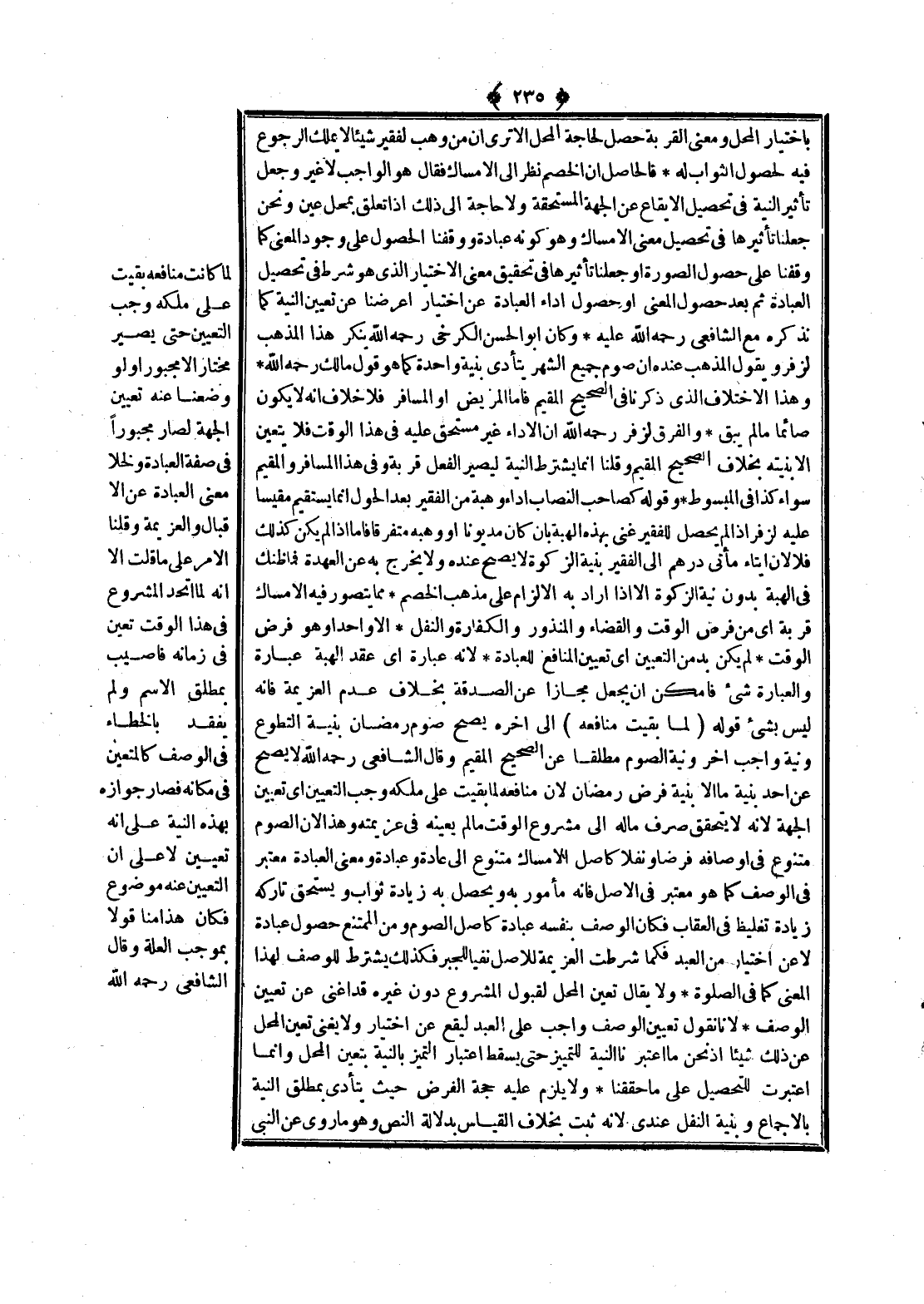 ـــــــــــــــــــــــــــــQبِاخْتِيَارِ الْمَحَلِّ وَمَعْنَى الْقُرْبَةِ حَصَلَ لِحَاجَةِ الْمَحَلِّ أَلَا تَرَى أَنَّ مَنْ وَهَبَ لِفَقِيرٍ شَيْئًا لَا يَمْلِكُ الرُّجُوعَ فِيهِ لِحُصُولِ الثَّوَابِ لَهُ فَالْحَاصِلُ أَنَّ الْخَصْمَ نَظَرَ إلَى الْإِمْسَاكِ فَقَالَ هُوَ الْوَاجِبُ لَا غَيْرُ وَجَعَلَ تَأْثِيرَ النِّيَّةِ فِي تَحْصِيلِ الْإِيقَاعِ عَنْ الْجِهَةِ الْمُسْتَحَقَّةِ وَلَا حَاجَةَ إلَى ذَلِكَ إذَا تَعَلَّقَ بِمَحَلٍّ عُيِّنَ وَنَحْنُ جَعَلْنَا تَأْثِيرَهَا فِي تَحْصِيلِ مَعْنَى الْإِمْسَاكِ وَهُوَ كَوْنُهُ عِبَادَةً وَوَقَفْنَا الْحُصُولَ عَلَى وُجُودِ الْمَعْنَى كَمَا وَقَفْنَا عَلَى حُصُولِ الصُّورَةِ أَوْ جَعَلْنَا تَأْثِيرَهَا فِي تَحْقِيقِ مَعْنَى الِاخْتِيَارِ الَّذِي هُوَ شَرْطٌ فِي تَحْصِيلِ الْعِبَادَةِ ثُمَّ بَعْدَ حُصُولِ الْمَعْنَى أَوْ حُصُولِ أَدَاءِ الْعِبَادَةِ عَنْ اخْتِيَارٍ أَعْرَضْنَا عَنْ تَعْيِينِ النِّيَّةِ كَمَا نَذْكُرُهُ مَعَ الشَّافِعِيِّ رَحْمَةُ اللَّهِ عَلَيْهِ وَكَانَ أَبُو الْحَسَنِ الْكَرْخِيُّ - رَحِمَهُ اللَّهُ - يُنْكِرُ هَذَا الْمَذْهَبَ لِزُفَرَ وَيَقُولُ الْمَذْهَبُ عِنْدَهُ أَنَّ صَوْمَ جَمِيعِ الشَّهْرِ يَتَأَدَّى بِنِيَّةٍ وَاحِدَةٍ كَمَا هُوَ قَوْلُ مَالِكٍ - رَحِمَهُ اللَّهُ - وَهَذَا الِاخْتِلَافُ الَّذِي ذَكَرْنَاهُ فِي الصَّحِيحِ الْمُقِيمِ فَأَمَّا الْمَرِيضُ أَوْ الْمُسَافِرُ فَلَا خِلَافَ أَنَّهُ لَا يَكُونُ صَائِمًا مَا لَمْ يَبْقَ.