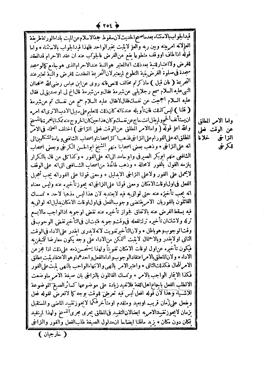[الْأَمْرُ الْمُطْلَقُ عَنْ الْوَقْتِ فَعَلَى التَّرَاخِي]