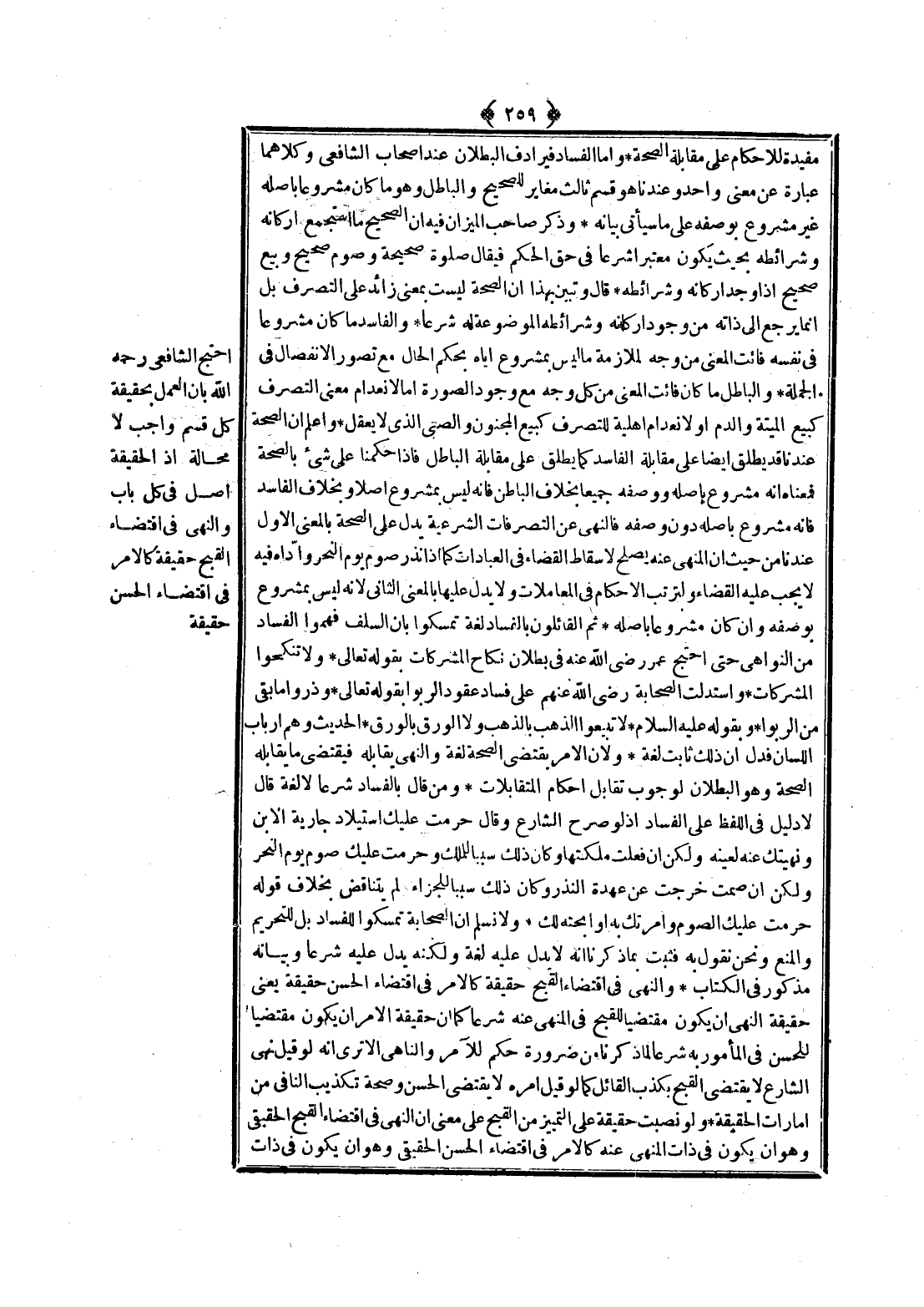 احْتَجَّ الشَّافِعِيُّ - رَحِمَهُ اللَّهُ - بِأَنَّ الْعَمَلَ بِحَقِيقَةِ كُلِّ قِسْمٍ وَاجِبٌ لَا مَحَالَةَ إذْ الْحَقِيقَةُ أَصْلٌ فِي كُلِّ بَابٍ وَالنَّهْيُ فِي اقْتِضَاءِ الْقُبْحِ حَقِيقَةٌ كَالْأَمْرِ فِي اقْتِضَاءِ الْحُسْنِ حَقِيقَةٌ