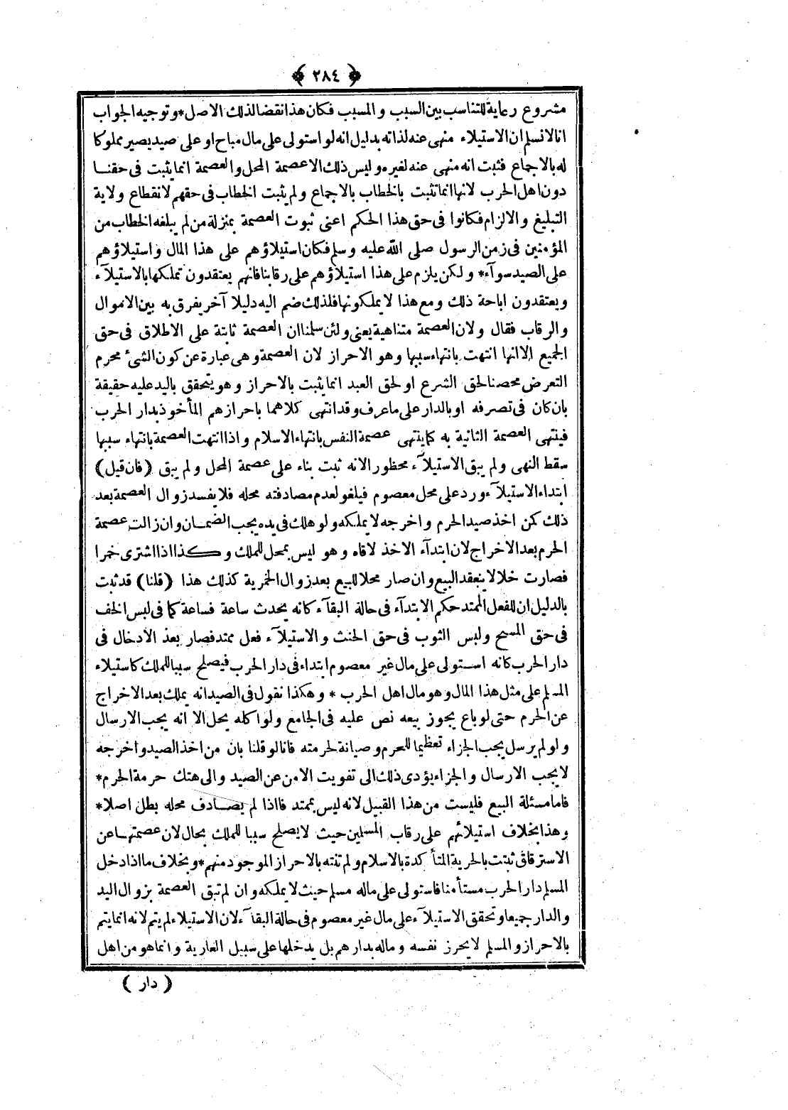 ـــــــــــــــــــــــــــــQمَشْرُوعٍ رِعَايَةً لِلتَّنَاسُبِ بَيْنَ السَّبَبِ وَالْمُسَبَّبِ فَكَانَ هَذَا نَقْضًا لِذَلِكَ الْأَصْلِ.