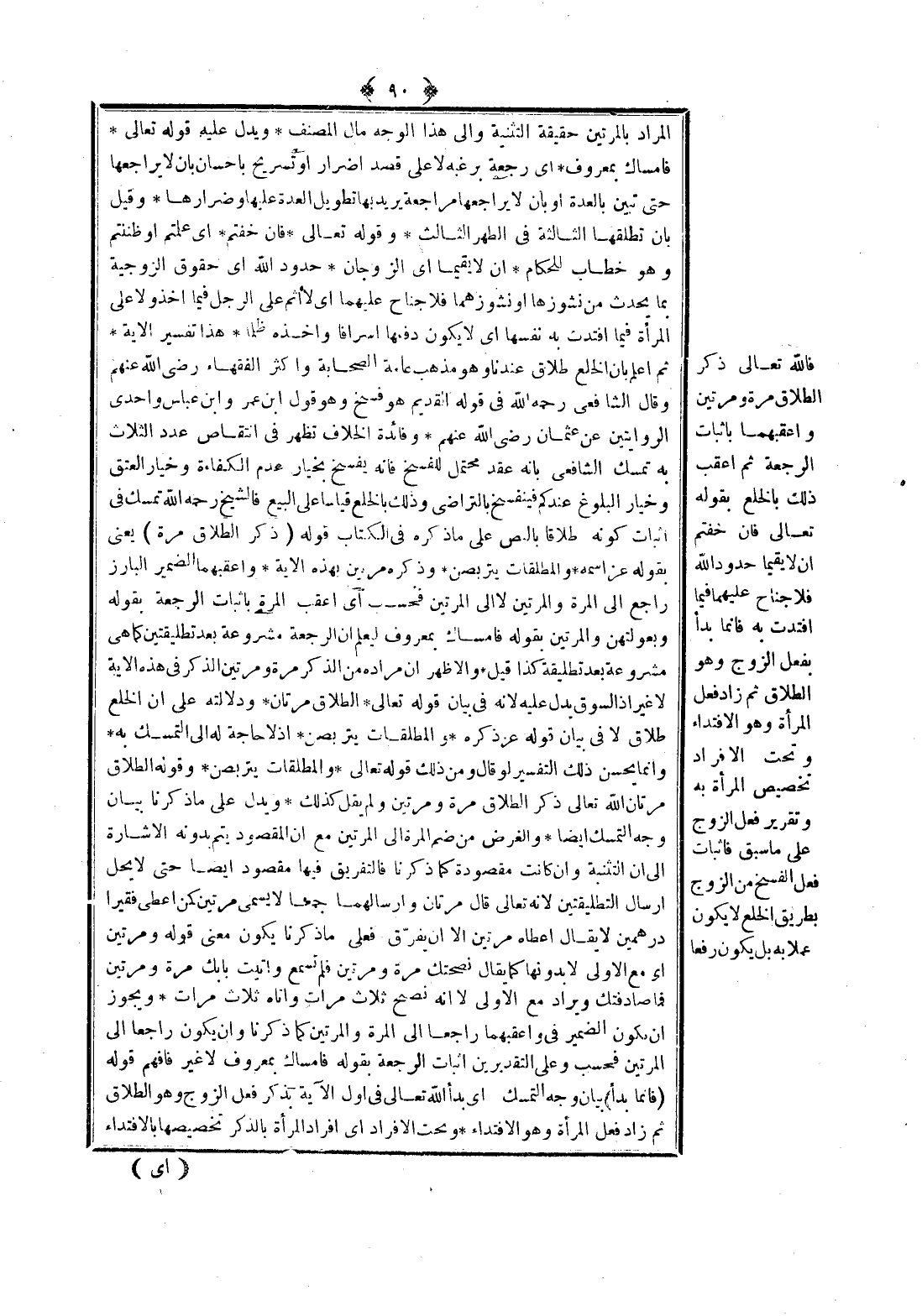 فَاَللَّهُ تَعَالَى ذَكَرَ الطَّلَاقَ مَرَّةً وَمَرَّتَيْنِ وَأَعْقَبَهُمَا بِإِثْبَاتِ الرَّجْعَةِ ثُمَّ أَعْقَبَ ذَلِكَ بِالْخُلْعِ بِقَوْلِهِ تَعَالَى: {فَإِنْ خِفْتُمْ أَلا يُقِيمَا حُدُودَ اللَّهِ فَلا جُنَاحَ عَلَيْهِمَا فِيمَا افْتَدَتْ بِهِ} [البقرة: 229] فَإِنَّمَا بَدَأَ بِفِعْلِ الزَّوْجِ، وَهُوَ الطَّلَاقُ ثُمَّ زَادَ فِعْلَ الْمَرْأَةِ، وَهُوَ الِافْتِدَاءُ وَتَحْتَ الْأَفْرَادِ تَخْصِيصُ الْمَرْأَةِ بِهِ وَتَقْرِيرُ فِعْلِ الزَّوْجِ عَلَى مَا سَبَقَ فَإِثْبَاتُ فِعْلِ الْفَسْخِ مِنْ الزَّوْجِ بِطَرِيقِ الْخُلْعِ لَا يَكُونُ عَمَلًا بِهِ بَلْ يَكُونُ رَفْعًا