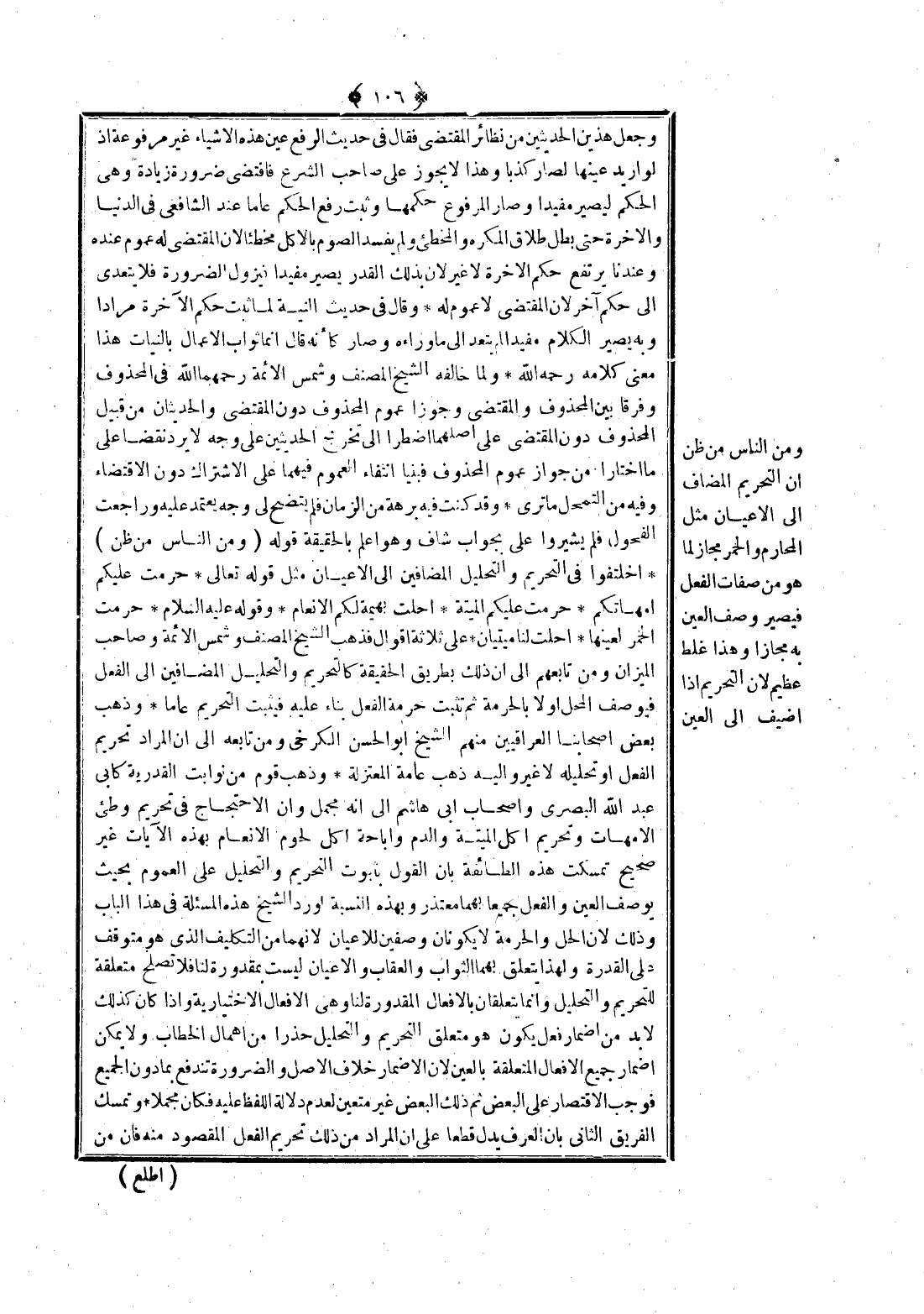 قَوْلُهُ (وَمِنْ النَّاسِ مَنْ ظَنَّ) اخْتَلَفُوا فِي التَّحْرِيمِ وَالتَّحْلِيلِ الْمُضَافَيْنِ إلَى الْأَعْيَانِ مِثْلُ قَوْله تَعَالَى {حُرِّمَتْ عَلَيْكُمْ أُمَّهَاتُكُمْ} [النساء: 23] {حُرِّمَتْ عَلَيْكُمُ الْمَيْتَةُ} [المائدة: 3] {أُحِلَّتْ لَكُمْ بَهِيمَةُ الأَنْعَامِ} [المائدة: 1] .