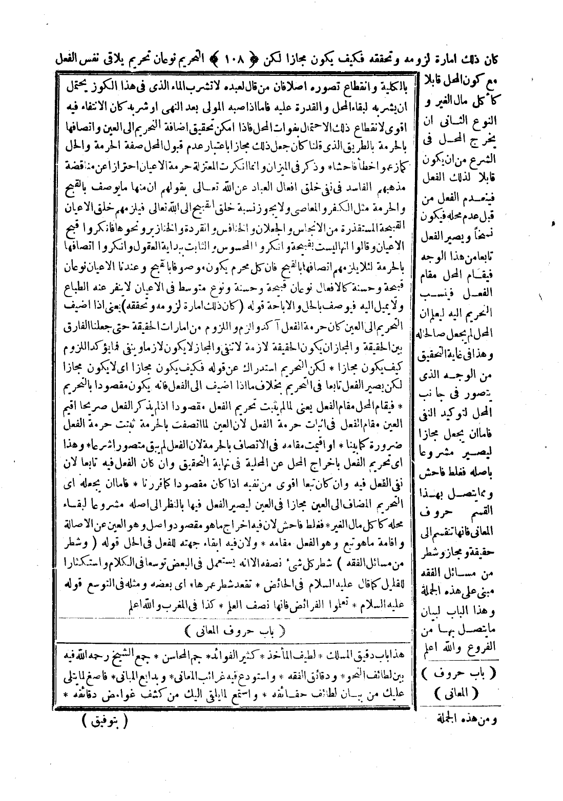هَذَا بَابٌ دَقِيقُ الْمَسْلَكِ لَطِيفُ الْمَأْخَذِ، كَثِيرُ الْفَوَائِدِ، جَمُّ الْمَحَاسِنِ، جَمَعَ الشَّيْخُ - رَحِمَهُ اللَّهُ - فِيهِ بَيْنَ لَطَائِفِ النَّحْوِ، وَدَقَائِقِ الْفِقْهِ، وَاسْتَوْدَعَ فِيهِ غَرَائِبَ الْمَعَانِي، وَبَدَائِعَ الْمَبَانِي، فَاصْغِ لِمَا يُتْلَى عَلَيْك مِنْ بَيَانِ لَطَائِفِ حَقَائِقِهِ، وَاسْتَمِعْ لِمَا يُلْقَى إلَيْك مِنْ كَشْفِ غَوَامِضِ دَقَائِقِهِ.