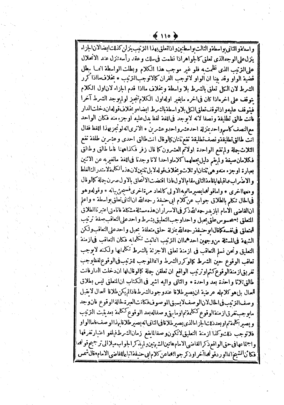 وَاعْلَمْ أَنَّ الْقَاضِيَ الْإِمَامَ أَبَا زَيْدٍ - رَحِمَهُ اللَّهُ - ذَكَرَ فِي الْأَسْرَارِ أَنَّ هَذِهِ مَسْأَلَةٌ مُشْكِلَةٌ فَإِنَّا مَتَى اعْتَبَرْنَا الطَّلَاقَ الْمُتَعَلِّقَ بِمَحْسُوسٍ عُلِّقَ بِحَبْلٍ وَاحِدٍ أَوْجَبَ التَّعْلِيقُ بِشَرْطٍ وَاحِدٍ عَلَى التَّعَاقُبِ صِفَةَ تَرْتِيبٍ لِلْمُتَعَلِّقِ فِي نَفْسِهِ كَمَا قَالَ أَبُو حَنِيفَةَ - رَحِمَهُ اللَّهُ - بِمَنْزِلَةِ حَلَقٍ مُتَعَلِّقَةٍ بِحَبْلٍ وَاحِدٍ عَلَى التَّعَاقُبِ وَلَكِنَّ الشُّبْهَةَ فِي الْمَسْأَلَةِ مِنْ وَجْهَيْنِ أَحَدُهُمَا أَنَّ التَّرْتِيبَ إنَّمَا ثَبَتَ تَكَلُّمًا بِهِ فَكَانَ التَّعَاقُبُ فِي أَزْمِنَةِ التَّعْلِيقِ وَنَحْنُ نُسَلِّمُ التَّعَاقُبَ فِي أَزْمِنَةِ تَعَلُّقِ الْأَجْزِئَةِ بِالشَّرْطِ تَكَلُّمًا بِهَا وَلَكِنَّهُ لَا يُوجِبُ تَعَاقُبَ الْوُقُوعِ حِينَ الشَّرْطِ كَمَا لَوْ كَرَّرَ الشَّرْطَ وَإِنَّمَا الْمُوجِبُ لِلتَّرْتِيبِ فِي الْوُقُوعِ لَفْظٌ يُوجِبُ تَفْرِيقَ أَزْمِنَةِ الْوُقُوعِ كَثُمَّ أَوْ تَرْتِيبِ الْوَاقِعِ إنْ تَعَلَّقْنَ جُمْلَةً كَمَا لَوْ قَالَ لَهَا إنْ دَخَلْت الدَّارَ فَأَنْتِ طَالِقٌ ثَلَاثًا وَاحِدَةً بَعْدَ وَاحِدَةٍ وَالثَّانِي وَإِلَيْهِ أُشِيرَ فِي الْكِتَابِ أَنَّ الْمُتَعَلِّقَ لَيْسَ بِطَلَاقٍ لِلْحَالِ بَلْ هُوَ كَلَامٌ لَهُ عُرْضِيَّةُ أَنْ يَصِيرَ طَلَاقًا عِنْدَ وُجُودِ الشَّرْطِ فَإِذَا لَمْ يَكُنْ طَلَاقًا لِلْحَالِ لَا يَقْبَلُ وَصْفَ التَّرْتِيبِ فِي الْحَالِ لِأَنَّ الْوَصْفَ لَا يَسْبِقُ الْمَوْصُوفَ فَكَانَتْ الْعِبْرَةُ لِحَالَةِ الْوُقُوعِ فَإِنْ وُجِدَ مَا يُوجِبُ تَفْرِيقَ أَزْمِنَةِ الْوُقُوعِ كَكَلِمَةِ ثُمَّ، أَوْ مَا يَبْقَى وَصْفًا لَهُ بَعْدَ الْوُقُوعِ كَكَلِمَةِ بَعْدَ يَثْبُتُ التَّرْتِيبُ وَيَصِيرُ بِكَلِمَةِ ثُمَّ أَوْ بَعْدَ ذَلِكَ الْجَزَاءُ الَّذِي يَصِيرُ طَلَاقًا فِي الثَّانِي أَنَّهُ يَصِيرُ طَلَاقًا بِهَذَا الْوَصْفِ فَأَمَّا الْوَاوُ فَلَا تُوجِبُ ذَلِكَ.
