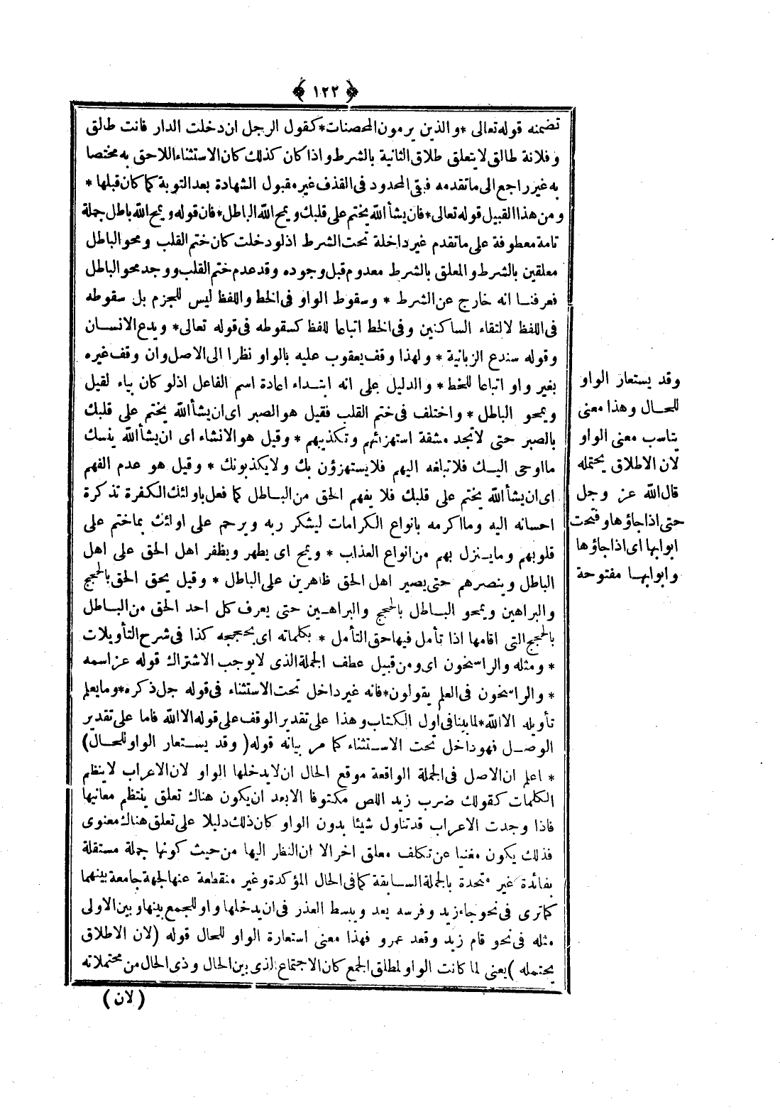 ـــــــــــــــــــــــــــــQتَضَمَّنَهُ قَوْله تَعَالَى {وَالَّذِينَ يَرْمُونَ الْمُحْصَنَاتِ} [النور: 4] كَقَوْلِ الرَّجُلِ إنْ دَخَلْت الدَّارَ فَأَنْتِ طَالِقٌ وَفُلَانَةُ طَالِقٌ لَا يَتَعَلَّقُ طَلَاقُ الثَّانِيَةِ بِالشَّرْطِ وَإِذَا كَانَ كَذَلِكَ كَانَ الِاسْتِثْنَاءُ اللَّاحِقُ بِهِ مُخْتَصًّا بِهِ غَيْرَ رَاجِعٍ إلَى مَا تَقَدَّمَهُ فَبَقِيَ الْمَحْدُودُ فِي الْقَذْفِ غَيْرَ مَقْبُولِ الشَّهَادَةِ بَعْدَ التَّوْبَةِ كَمَا كَانَ قَبْلَهَا وَمِنْ هَذَا الْقَبِيلِ قَوْله تَعَالَى {فَإِنْ يَشَأِ اللَّهُ يَخْتِمْ عَلَى قَلْبِكَ وَيَمْحُ اللَّهُ الْبَاطِلَ} [الشورى: 24] فَإِنَّ قَوْلَهُ (وَيَمْحُ اللَّهُ الْبَاطِلَ) جُمْلَةٌ تَامَّةٌ مَعْطُوفَةٌ عَلَى مَا تَقَدَّمَ غَيْرُ دَاخِلَةٍ تَحْتَ الشَّرْطِ إذْ لَوْ دَخَلَتْ كَانَ خَتْمُ الْقَلْبِ وَمَحْوُ الْبَاطِلِ مُعَلَّقَيْنِ بِالشَّرْطِ وَالْمُعَلَّقُ بِالشَّرْطِ مَعْدُومٌ قَبْلَ وُجُودِهِ وَقَدْ عُدِمَ خَتْمُ الْقَلْبِ وَوُجِدَ مَحْوُ الْبَاطِلِ فَعَرَفْنَا أَنَّهُ خَارِجٌ عَنْ الشَّرْطِ وَسُقُوطُ الْوَاوِ فِي الْخَطِّ وَاللَّفْظِ لَيْسَ لِلْجَزْمِ بَلْ سُقُوطُهُ فِي اللَّفْظِ لِالْتِقَاءِ السَّاكِنَيْنِ وَفِي الْخَطِّ إتْبَاعًا لِلَّفْظِ كَسُقُوطِهِ فِي قَوْله تَعَالَى {وَيَدْعُ الإِنْسَانُ} [الإسراء: 11] وَقَوْلِهِ {سَنَدْعُ الزَّبَانِيَةَ} [العلق: 18] .