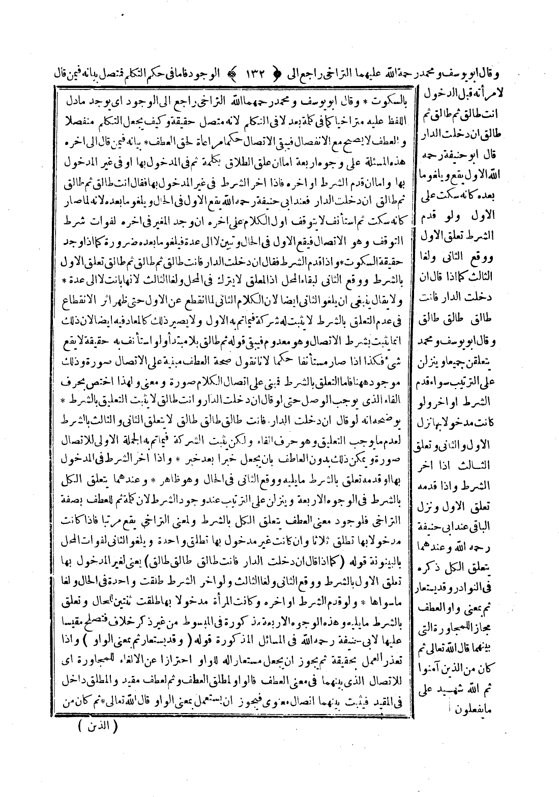 ـــــــــــــــــــــــــــــQبِالسُّكُوتِ وَقَالَ أَبُو يُوسُفَ وَمُحَمَّدٌ رَحِمَهُمَا اللَّهُ التَّرَاخِي رَاجِعٌ إلَى الْوُجُودِ أَيْ يُوجَدُ مَا دَلَّ اللَّفْظُ عَلَيْهِ مُتَرَاخِيًا كَمَا فِي كَلِمَةِ بَعْدَ لَا فِي التَّكَلُّمِ لِأَنَّهُ مُتَّصِلٌ حَقِيقَةً وَكَيْفَ يُجْعَلُ التَّكَلُّمُ مُنْفَصِلًا وَالْعَطْفُ لَا يَصِحُّ مَعَ الِانْفِصَالِ فَيَبْقَى الِاتِّصَالُ حُكْمًا مُرَاعَاةً لِحَقِّ الْعَطْفِ بَيَانُهُ فِيمَنْ قَالَ إلَى آخِرِهِ هَذِهِ الْمَسْأَلَةُ عَلَى وُجُوهٍ أَرْبَعَةٍ أَمَّا إنْ عَلَّقَ الطَّلَاقَ بِكَلِمَةِ ثُمَّ فِي الْمَدْخُولِ بِهَا أَوْ فِي غَيْرِ الْمَدْخُولِ بِهَا وَأَمَّا إنْ قَدَّمَ الشَّرْطَ أَوْ أَخَّرَهُ فَإِذَا أَخَّرَ الشَّرْطَ فِي غَيْرِ الْمَدْخُولِ بِهَا فَقَالَ أَنْتِ طَالِقٌ ثُمَّ طَالِقٌ ثُمَّ طَالِقٌ إنْ دَخَلْت الدَّارَ فَعِنْدَ أَبِي حَنِيفَةَ - رَحِمَهُ اللَّهُ - يَقَعُ الْأَوَّلُ فِي الْحَالِ وَيَلْغُو مَا بَعْدَهُ لِأَنَّهُ لَمَّا صَارَ كَأَنَّهُ سَكَتَ ثُمَّ اسْتَأْنَفَ لَا يَتَوَقَّفُ أَوَّلُ الْكَلَامِ عَلَى آخِرِهِ إنْ وُجِدَ الْمُغَيِّرُ فِي آخِرِهِ لِفَوَاتِ شَرْطِ التَّوَقُّفِ وَهُوَ الِاتِّصَالُ فَيَقَعُ الْأَوَّلُ فِي الْحَالِ وَتَبِينُ لَا إلَى عِدَّةٍ فَيَلْغُو مَا بَعْدَهُ ضَرُورَةً كَمَا إذَا وُجِدَ حَقِيقَةُ السُّكُوتِ.