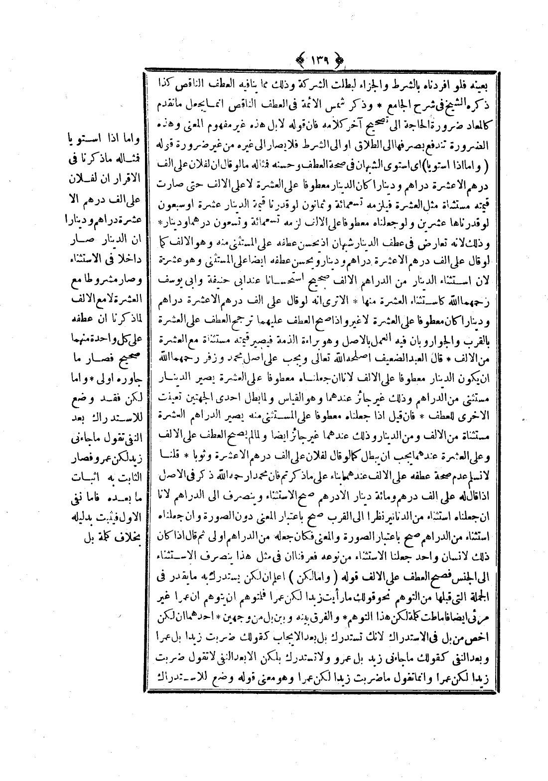 ـــــــــــــــــــــــــــــQبِعَيْنِهِ فَلَوْ أَفْرَدْنَاهُ بِالشَّرْطِ وَالْجَزَاءِ لَبَطَلَتْ الشَّرِكَةُ وَذَلِكَ مِمَّا يُنَافِيهِ الْعَطْفُ النَّاقِصُ كَذَا ذَكَرَهُ الشَّيْخُ فِي شَرْحِ الْجَامِعِ وَذَكَرَ شَمْسُ الْأَئِمَّةِ فِي الْعَطْفِ النَّاقِصِ إنَّمَا يُجْعَلُ مَا تَقَدَّمَ كَالْمُعَادِ ضَرُورَةَ الْحَاجَةِ إلَى تَصْحِيحِ آخِرِ كَلَامِهِ فَإِنَّ قَوْلَهُ لَا بَلْ هَذِهِ غَيْرُ مَفْهُومِ الْمَعْنَى وَهَذِهِ الضَّرُورَةُ تَنْدَفِعُ بِصَرْفِهَا إلَى الطَّلَاقِ أَوْ إلَى الشَّرْطِ فَلَا يُصَارُ إلَى غَيْرِهِ مِنْ غَيْرِ ضَرُورَةٍ.