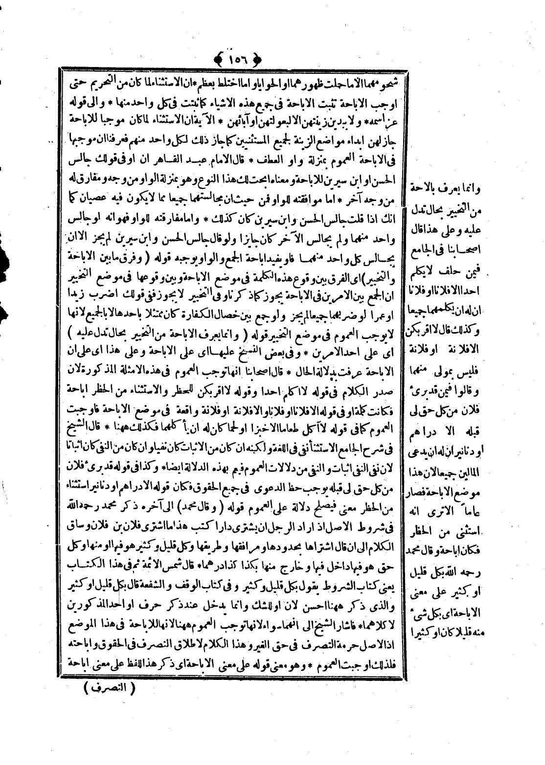 ـــــــــــــــــــــــــــــQأَنَّ الِاسْتِثْنَاءَ لَمَّا كَانَ مِنْ التَّحْرِيمِ حَتَّى أَوْجَبَ الْإِبَاحَةَ تَثْبُتُ الْإِبَاحَةُ فِي جَمِيعِ هَذِهِ الْأَشْيَاءِ كَمَا ثَبَتَتْ فِي كُلِّ وَاحِدٍ مِنْهَا وَإِلَى قَوْلِهِ عَزَّ اسْمُهُ {وَلا يُبْدِينَ زِينَتَهُنَّ إِلا لِبُعُولَتِهِنَّ أَوْ آبَائِهِنَّ} [النور: 31] الْآيَةَ أَنَّ الِاسْتِثْنَاءَ لَمَّا كَانَ مُوجِبًا لِلْإِبَاحَةِ جَازَ لَهُنَّ إبْدَاءُ مَوَاضِعِ الزِّينَةِ لِجَمِيعِ الْمُسْتَثْنَيَيْنِ كَمَا جَازَ ذَلِكَ لِكُلِّ وَاحِدٍ مِنْهُمْ فَعَرَفْنَا أَنَّ مُوجَبَهَا فِي الْإِبَاحَةِ الْعُمُومُ بِمَنْزِلَةِ وَاوِ الْعَطْفِ قَالَ الْإِمَامُ عَبْدُ الْقَاهِرِ إنَّ أَوْ فِي قَوْلِك جَالِسْ الْحَسَنَ أَوْ ابْنَ سِيرِينَ لِلْإِبَاحَةِ وَمَعْنَاهُ أَبَحْت لَك هَذَا النَّوْعَ وَهُوَ بِمَنْزِلَةِ الْوَاوِ مِنْ وَجْهٍ وَمُفَارِقٌ لَهُ مِنْ وَجْهٍ آخَرَ.