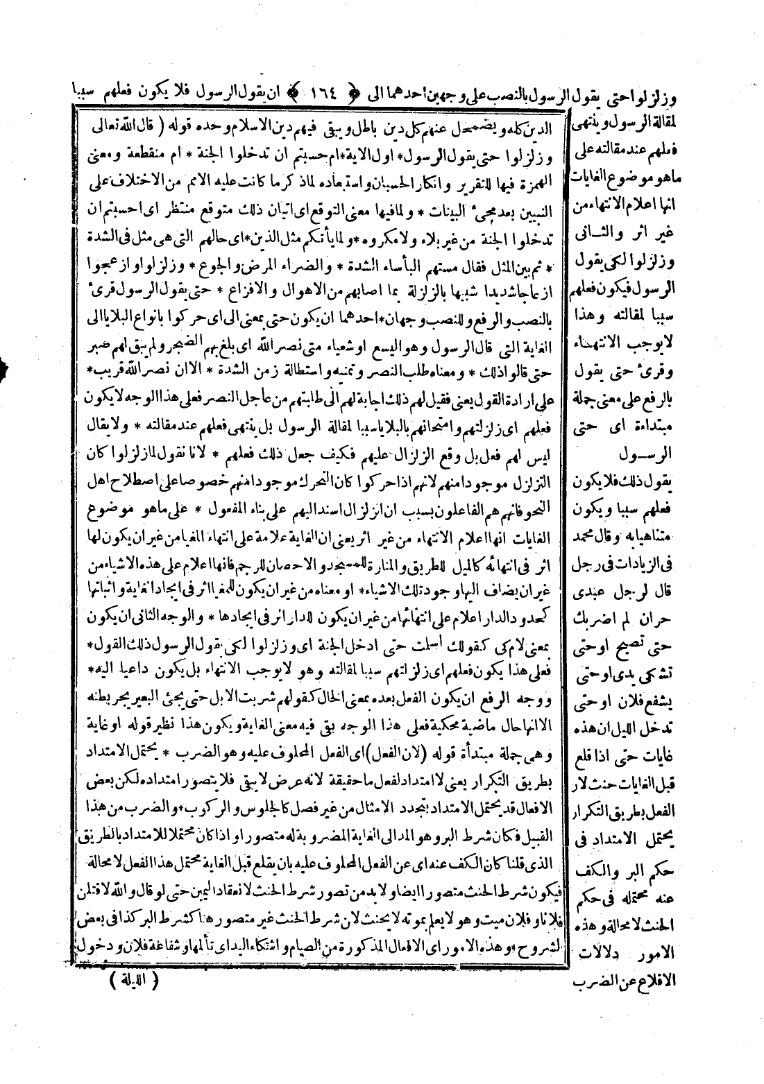 وَلَا يُقَالُ لَيْسَ لَهُمْ فِعْلٌ بَلْ وَقَعَ الزِّلْزَالُ عَلَيْهِمْ فَكَيْفَ جَعَلَ ذَلِكَ فِعْلَهُمْ. لِأَنَّا نَقُولُ لَمَّا زُلْزِلُوا كَانَ التَّزَلْزُلُ مَوْجُودًا مِنْهُمْ لِأَنَّهُمْ إذَا حُرِّكُوا كَانَ التَّحَرُّكُ مَوْجُودًا مِنْهُمْ خُصُوصًا عَلَى اصْطِلَاحِ أَهْلِ النَّحْوِ فَإِنَّهُمْ هُمْ الْفَاعِلُونَ بِسَبَبِ أَنَّ الزِّلْزَالَ أُسْنِدَ إلَيْهِمْ عَلَى بِنَاءِ الْمَفْعُولِ. عَلَى مَا هُوَ مَوْضُوعُ الْغَايَاتِ أَنَّهَا أَعْلَامُ الِانْتِهَاءِ مِنْ غَيْرِ أَثَرٍ يَعْنِي أَنَّ الْغَايَةَ عَلَامَةٌ عَلَى انْتِهَاءِ الْمُغَيَّا مِنْ غَيْرِ أَنْ يَكُونَ لَهَا أَثَرٌ فِي انْتِهَائِهِ كَالْمِيلِ لِلطَّرِيقِ وَالْمَنَارَةِ لِلْمَسْجِدِ وَالْإِحْصَانِ لِلرَّجْمِ فَإِنَّهَا أَعْلَامٌ عَلَى هَذِهِ الْأَشْيَاءِ مِنْ غَيْرِ أَنْ يُضَافَ إلَيْهَا وُجُودُ تِلْكَ الْأَشْيَاءِ. أَوْ مَعْنَاهُ مِنْ غَيْرِ أَنْ يَكُونَ لِلْمُغَيَّا أَثَرٌ فِي إيجَادِ الْغَايَةِ وَإِثْبَاتِهَا كَحُدُودِ الدَّارِ أَعْلَامٌ عَلَى انْتِهَائِهَا مِنْ غَيْرِ أَنْ يَكُونَ لِلدَّارِ أَثَرٌ فِي إيجَادِهَا. وَالْوَجْهُ الثَّانِي أَنْ يَكُونَ بِمَعْنَى لَامِ كَيْ كَقَوْلِك أَسْلَمْت حَتَّى أَدْخُلَ الْجَنَّةَ أَيْ وَزُلْزِلُوا لِكَيْ يَقُولَ الرَّسُولُ ذَلِكَ الْقَوْلَ. فَعَلَى هَذَا يَكُونُ فِعْلُهُمْ أَيْ زَلْزَلَتُهُمْ سَبَبًا لِمَقَالَتِهِ وَهُوَ لَا يُوجِبُ الِانْتِهَاءَ بَلْ يَكُونُ دَاعِيًا إلَيْهِ. وَوَجْهُ الرَّفْعِ أَنْ يَكُونَ الْفِعْلُ بَعْدَهُ بِمَعْنَى الْحَالِ كَقَوْلِهِمْ شَرِبَتْ الْإِبِلُ حَتَّى يَجِيءُ الْبَعِيرُ يَجُرُّ بَطْنَهُ إلَّا أَنَّهَا حَالٌ مَاضِيَةٌ مَحْكِيَّةٌ فَعَلَى هَذَا الْوَجْهِ بَقِيَ فِيهِ مَعْنَى الْغَايَةِ وَيَكُونُ هَذَا نَظِيرُ قَوْلِهِ أَوْ غَايَةً وَهِيَ جُمْلَةٌ مُبْتَدَأَةٌ قَوْلُهُ (لِأَنَّ الْفِعْلَ) أَيْ الْفِعْلَ الْمَحْلُوفَ عَلَيْهِ وَهُوَ الضَّرْبُ.