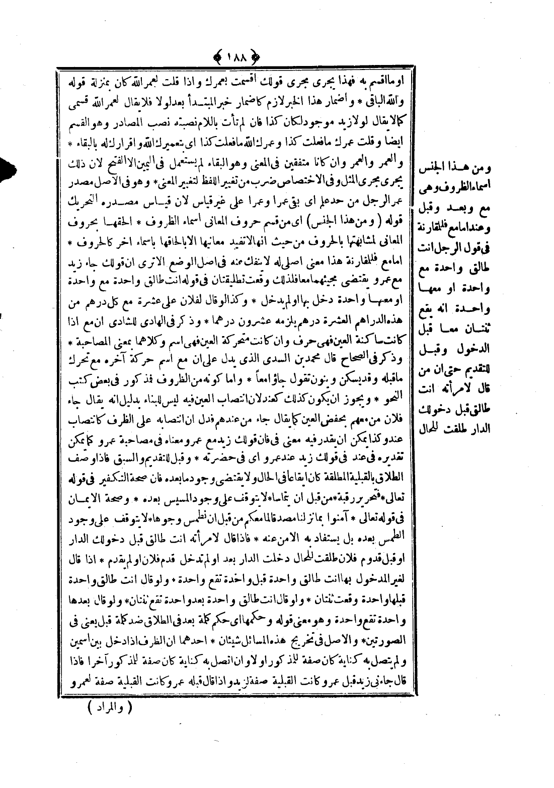 ـــــــــــــــــــــــــــــQأَوْ مَا أُقْسِمُ بِهِ فَهَذَا يَجْرِي مَجْرَى قَوْلِك أَقْسَمْت بِعُمُرِك وَإِذَا قُلْت لَعَمْرُ اللَّهِ كَانَ بِمَنْزِلَةِ قَوْلِهِ وَاَللَّهِ الْبَاقِي.