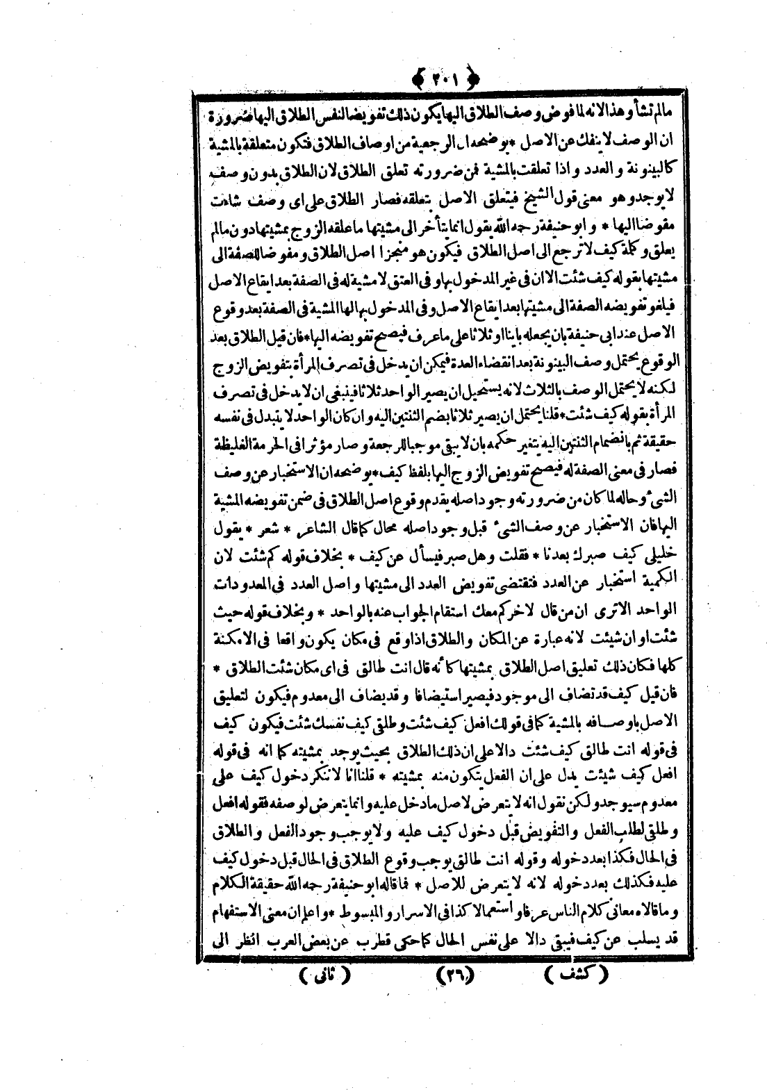 فَإِنْ قِيلَ كَيْفَ قَدْ تُضَافُ إلَى مَوْجُودٍ فَيَصِيرُ اسْتِيضَافًا، وَقَدْ يُضَافُ إلَى مَعْدُومٍ فَيَكُونُ لِتَعْلِيقِ الْأَصْلِ بِأَوْصَافِهِ بِالْمَشِيئَةِ كَمَا فِي قَوْلِك افْعَلْ كَيْفَ شِئْت، وَطَلِّقِي كَيْفَ نَفْسَكِ شِئْتِ فَيَكُونُ كَيْفَ فِي قَوْلِهِ أَنْتِ طَالِقٌ كَيْفَ شِئْت دَالًّا عَلَى أَنَّ ذَلِكَ الطَّلَاقَ بِحَيْثُ يُوجَدُ بِمَشِيئَتِهِ كَمَا أَنَّهُ فِي قَوْلِهِ افْعَلْ كَيْفَ شِئْت يَدُلُّ عَلَى أَنَّ الْفِعْلَ يَتَكَوَّنُ مِنْهُ بِمَشِيئَتِهِ.