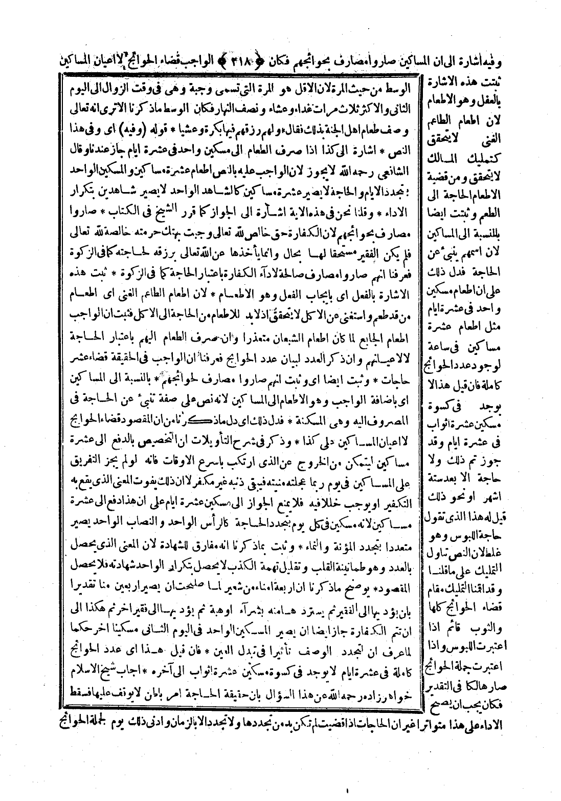 فَإِنْ قِيلَ: هَذَا أَيْ عَدَدُ الْحَوَائِجِ كَامِلَةً فِي عَشَرَةِ أَيَّامٍ لَا يُوجَدُ فِي كِسْوَةِ مِسْكِينٍ عَشَرَةَ أَثْوَابٍ إلَى آخِرِهِ. أَجَابَ شَيْخُ الْإِسْلَامِ خُوَاهَرْ زَادَهْ - رَحِمَهُ اللَّهُ - عَنْ هَذَا السُّؤَالِ بِأَنَّ حَقِيقَةَ الْحَاجَةِ أَمْرٌ بَاطِنٌ لَا يُوقَفُ عَلَيْهَا فَسَقَطَ
