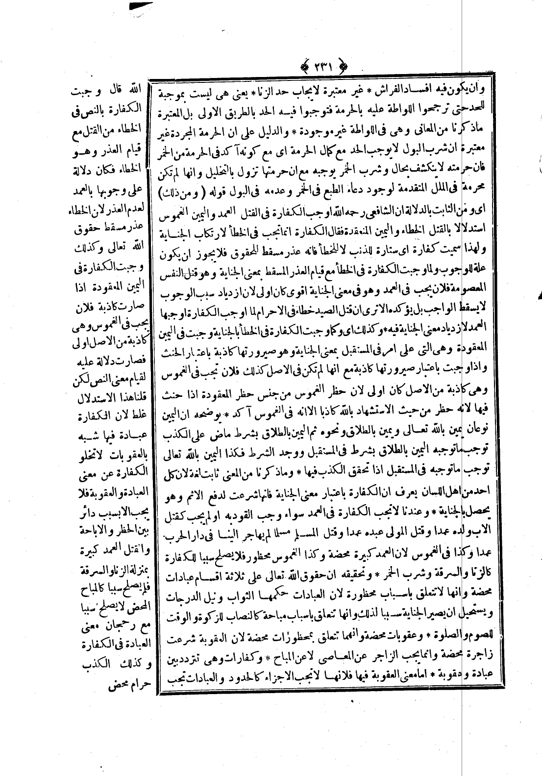 وَكَفَّارَاتٌ وَهِيَ تَتَرَدَّدُ بَيْنَ عِبَادَةٍ وَعُقُوبَةٍ. أَمَّا مَعْنَى الْعُقُوبَةِ فِيهَا فَلِأَنَّهَا لَا تَجِبُ الْإِجْزَاءُ كَالْحُدُودِ وَالْعِبَادَاتُ تَجِبُ