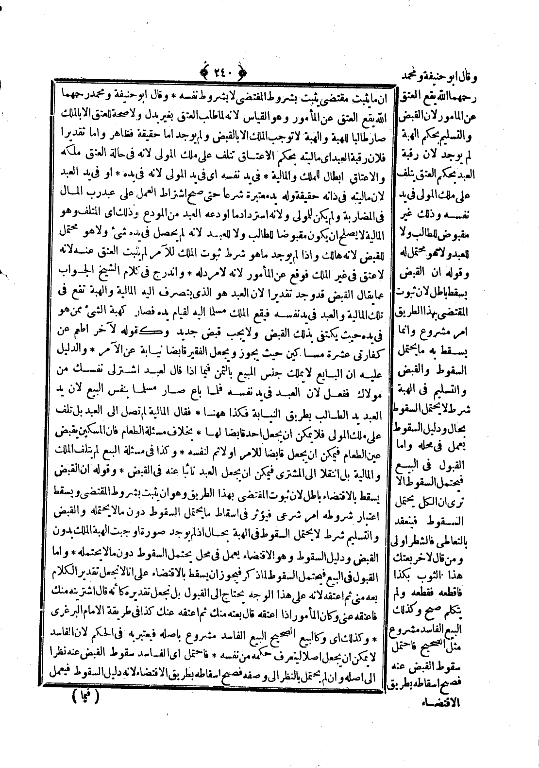 وَقَوْلُهُ: إنَّ الْقَبْضَ يَسْقُطُ، بَاطِلٌ؛ لِأَنَّ ثُبُوتَ الْمُقْتَضِي بِهَذَا الطَّرِيقِ أَمْرٌ مَشْرُوعٌ وَإِنَّمَا يَسْقُطُ بِهِ مَا يَحْتَمِلُ السُّقُوطَ وَالْقَبْضُ وَالتَّسْلِيمُ فِي الْهِبَةِ شَرْطٌ لَا يَحْتَمِلُ السُّقُوطَ بِحَالٍ وَدَلِيلُ السُّقُوطِ يَعْمَلُ فِي مَحِلِّهِ، وَأَمَّا الْقَبُولُ فِي الْبَيْعِ فَيَحْتَمِلُ السُّقُوطَ، أَلَا تَرَى أَنَّ الْكُلَّ يَحْتَمِلُ السُّقُوطَ فَيَنْعَقِدُ بِالتَّعَاطِي فَالشَّطْرُ أَوْلَى، وَمَنْ قَالَ لِآخَرَ بِعْتُك هَذَا الثَّوْبَ بِكَذَا فَاقْطَعْهُ فَقَطَعَهُ وَلَمْ يَتَكَلَّمْ صَحَّ، وَكَذَلِكَ الْبَيْعُ الْفَاسِدُ مَشْرُوعٌ مِثْلُ الصَّحِيحِ فَاحْتَمَلَ سُقُوطَ الْقَبْضِ عَنْهُ فَصَحَّ إسْقَاطُهُ بِطَرِيقِ الِاقْتِضَاءِ