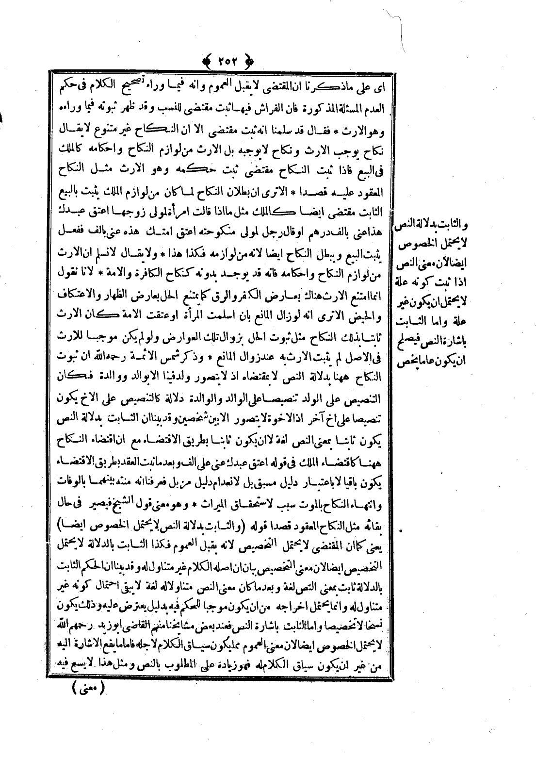 وَالثَّابِتُ بِدَلَالَةِ النَّصِّ لَا يَحْتَمِلُ الْخُصُوصَ أَيْضًا لِأَنَّ مَعْنَى النَّصِّ إذَا ثَبَتَ كَوْنُهُ عِلَّةً لَا يَحْتَمِلُ أَنْ يَكُونَ غَيْرَ عِلَّةٍ وَأَمَّا الثَّابِتُ بِإِشَارَةِ النَّصِّ فَيَصْلُحُ أَنْ يَكُونَ عَامًّا يَخُصُّ