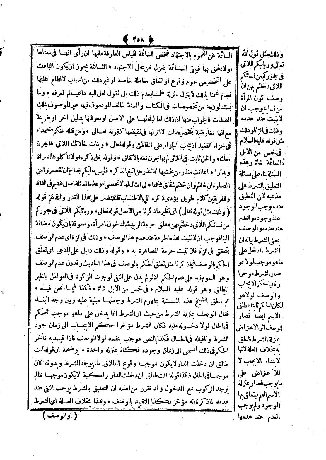 ـــــــــــــــــــــــــــــQالسَّائِمَةِ عَنْ الْعُمُومِ بِالِاجْتِهَادِ فَخَصَّ السَّائِمَةَ لِقِيَاسِ الْعَلُوفَةِ عَلَيْهَا إنْ رَأَى أَنَّهَا فِي مَعْنَاهَا أَوْ لَا يَلْحَقُ بِهَا فَيَبْقَى السَّائِمَةُ بِمَعْزِلٍ عَنْ مَحَلِّ الِاجْتِهَادِ الثَّالِثَةُ يَجُوزُ أَنْ يَكُونَ الْبَاعِثُ عَلَى التَّخْصِيصِ عُمُومُ وُقُوعٍ أَوْ اتِّفَاقُ مُعَامَلَةٍ خَاصَّةٍ أَوْ غَيْرِ ذَلِكَ مِنْ أَسْبَابٍ لَا نَطَّلِعُ عَلَيْهَا فَعَدَمُ عِلْمِنَا بِذَلِكَ لَا يَنْزِلُ مَنْزِلَةَ عِلْمِنَا بِعَدَمِ ذَلِكَ بَلْ نَقُولُ لَعَلَّ إلَيْهِ دَاعِيًا لَمْ نَعْرِفْهُ وَمَا يَسْتَدِلُّونَ بِهِ مِنْ تَخْصِيصَاتٍ فِي الْكِتَابِ وَالسُّنَّةِ خَالَفَ الْمَوْصُوفُ فِيهَا غَيْرَ الْمَوْصُوفِ بِتِلْكَ الصِّفَاتِ فَالْجَوَابُ عَنْهَا أَنَّ ذَلِكَ إمَّا لِبَقَائِهَا عَلَى الْأَصْلِ أَوْ مَعْرِفَتِهَا بِدَلِيلٍ آخَرَ أَوْ بِقَرِينَةٍ مَعَ أَنَّهَا مُعَارَضَةٌ بِتَخْصِيصَاتٍ لَا أَثَرَ لَهَا فِي نَقِيضِهَا كَقَوْلِهِ تَعَالَى {وَمَنْ قَتَلَهُ مِنْكُمْ مُتَعَمِّدًا} [المائدة: 95] فِي جَزَاءِ الصَّيْدِ إذْ يَجِبُ الْجَزَاءُ عَلَى الْخَاطِئِ وقَوْله تَعَالَى {وَبَنَاتِ خَالاتِكَ اللاتِي هَاجَرْنَ مَعَكَ} [الأحزاب: 50] وَالْحِلُّ ثَابِتٌ فِي اللَّاتِي لَمْ يُهَاجِرْنَ مَعَهُ بِالِاتِّفَاقِ.
