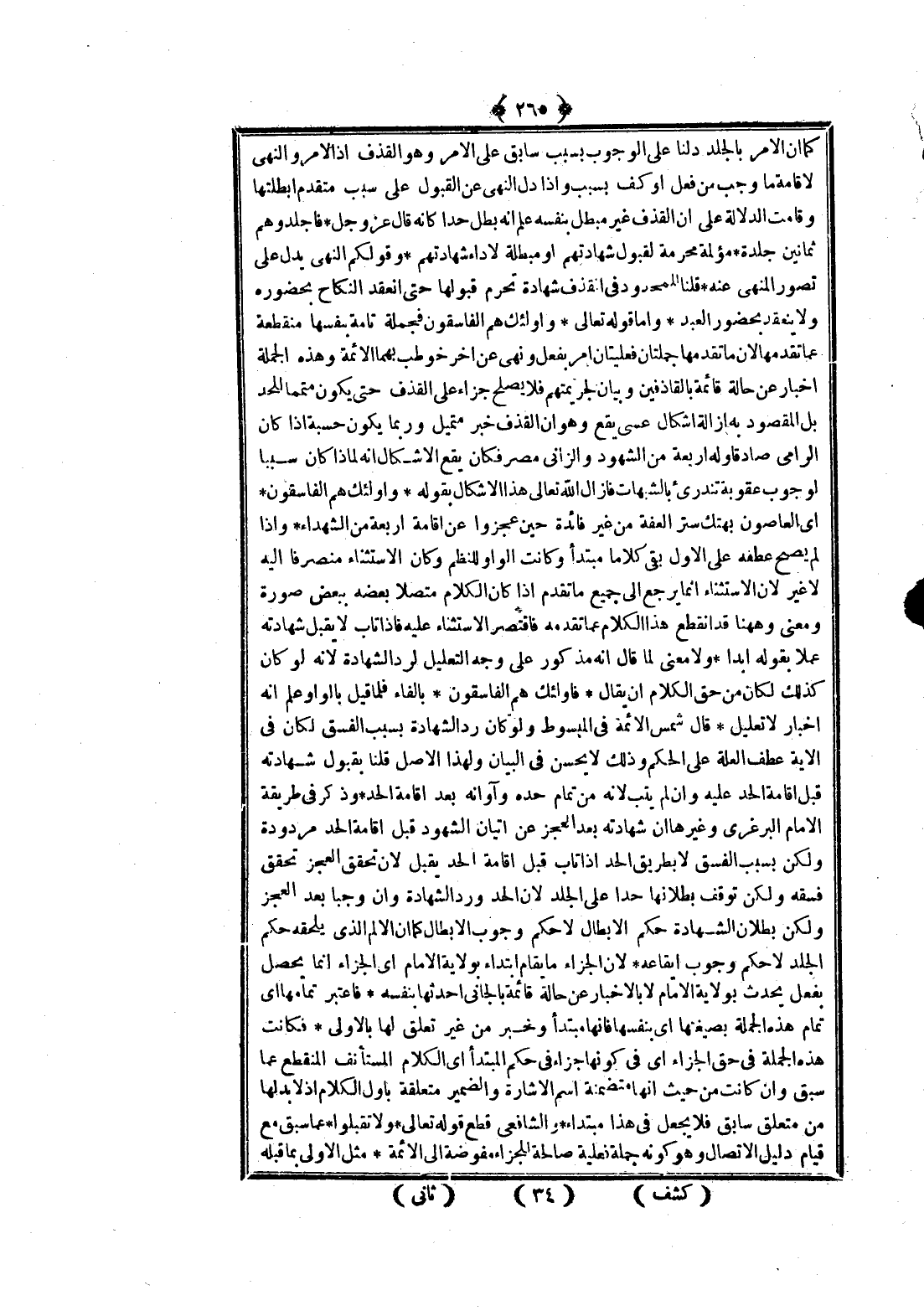 ـــــــــــــــــــــــــــــQكَمَا أَنَّ الْأَمْرَ بِالْجَلْدِ دَلَّنَا عَلَى الْوُجُوبِ بِسَبَبٍ سَابِقٍ عَلَى الْأَمْرِ وَهُوَ الْقَذْفُ إذْ الْأَمْرُ وَالنَّهْيُ لِإِقَامَةِ مَا وَجَبَ مِنْ فِعْلٍ أَوْ كَفٍّ بِسَبَبٍ وَإِذَا دَلَّ النَّهْيُ عَنْ الْقَبُولِ عَلَى سَبَبٍ مُتَقَدِّمٍ أَبْطَلَتْهَا وَقَامَتْ الدَّلَالَةُ عَلَى أَنَّ الْقَذْفَ غَيْرُ مُبْطِلٍ بِنَفْسِهِ عُلِمَ أَنَّهُ بَطَلَ حَدًّا كَأَنَّهُ قَالَ عَزَّ وَجَلَّ {فَاجْلِدُوهُمْ ثَمَانِينَ جَلْدَةً} [النور: 4] مُؤْلِمَةً مُحَرِّمَةً لِقَبُولِ شَهَادَتِهِمْ أَوْ مُبْطِلَةً لِأَدَاءِ شَهَادَتِهِمْ وَقَوْلُكُمْ النَّهْيُ يَدُلُّ عَلَى تَصَوُّرِ الْمَنْهِيِّ عَنْهُ.
