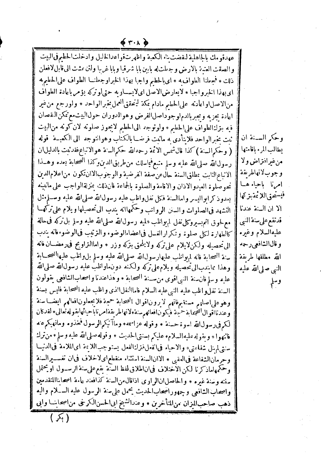 وَالْإِحْيَاءُ فِي الْفِعْلِ فَتَرْكُ الْفِعْلِ يَسْتَوْجِبُ اللَّائِمَةَ أَيْ الْمَلَامَةَ فِي الدُّنْيَا وَحِرْمَانَ الشَّفَاعَةِ فِي الْعُقْبَى. إلَّا أَنَّ السُّنَّةَ اسْتِثْنَاءٌ مُنْقَطِعٌ أَيْ لَا خِلَافَ فِي أَنَّ تَفْسِيرَ السُّنَّةِ وَحُكْمَهَا مَا ذَكَرْنَا الِاخْتِلَافُ فِي أَنَّ إطْلَاقَ لَفْظِ السُّنَّةِ يَقَعُ عَلَى سُنَّةِ الرَّسُولِ أَوْ يَحْتَمِلُ سُنَّتَهُ وَسُنَّةَ غَيْرِهِ. وَالْحَاصِلُ أَنَّ الرَّاوِيَ إذَا قَالَ مِنْ السُّنَّةِ كَذَا فَعِنْدَ عَامَّةِ أَصْحَابِنَا الْمُتَقَدِّمِينَ، وَأَصْحَابِ الشَّافِعِيِّ وَجُمْهُورِ أَصْحَابِ الْحَدِيثِ يُحْمَلُ عَلَى سُنَّةِ الرَّسُولِ - عَلَيْهِ السَّلَامُ -، وَإِلَيْهِ ذَهَبَ صَاحِبُ الْمِيزَانِ مِنْ الْمُتَأَخِّرِينَ. وَعِنْدَ الشَّيْخِ أَبِي الْحَسَنِ الْكَرْخِيِّ مِنْ أَصْحَابِنَا وَأَبِي بَكْرٍ الصَّيْرَفِيِّ