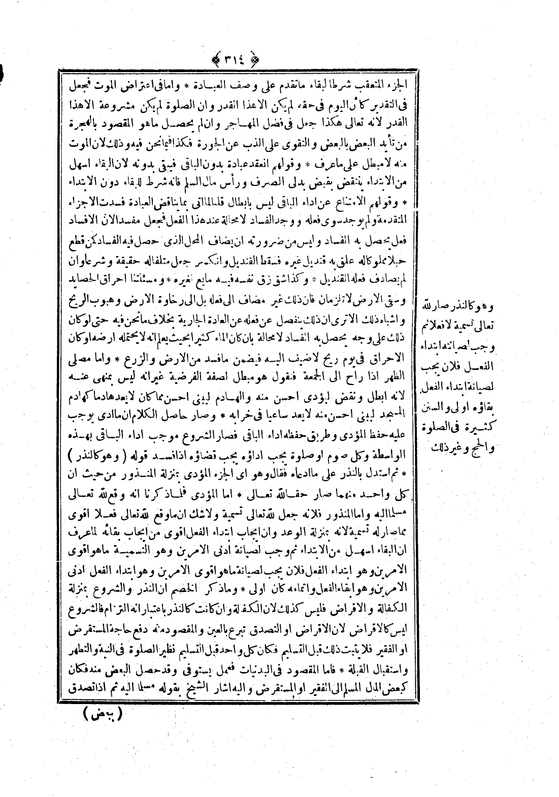 ـــــــــــــــــــــــــــــQالْجُزْءِ الْمُتَعَقِّبِ شَرْطًا لِبَقَاءِ مَا تَقَدَّمَ عَلَى وَصْفِ الْعِبَادَةِ.، وَأَمَّا فِي اعْتِرَاضِ الْمَوْتِ فَجُعِلَ فِي التَّقْدِيرِ كَأَنَّ الْيَوْمَ فِي حَقِّهِ لَمْ يَكُنْ إلَّا هَذَا الْقَدْرُ، وَإِنَّ الصَّلَاةَ لَمْ تَكُنْ مَشْرُوعَةً إلَّا هَذَا الْقَدْرُ؛ لِأَنَّهُ تَعَالَى هَكَذَا جَعَلَ فِي فَضْلِ الْمُهَاجِرِ، وَإِنْ لَمْ يَحْصُلْ مَا هُوَ الْمَقْصُودُ بِالْهِجْرَةِ مِنْ تَأَيُّدِ الْبَعْضِ بِالْبَعْضِ وَالتَّقَوِّي عَلَى الذَّبِّ عَنْ الْجُوَرَةِ فَكَذَا فِيمَا نَحْنُ فِيهِ وَذَلِكَ لِأَنَّ الْمَوْتَ مِنْهُ لَا مُبْطِلَ عَلَى مَا عُرِفَ.
