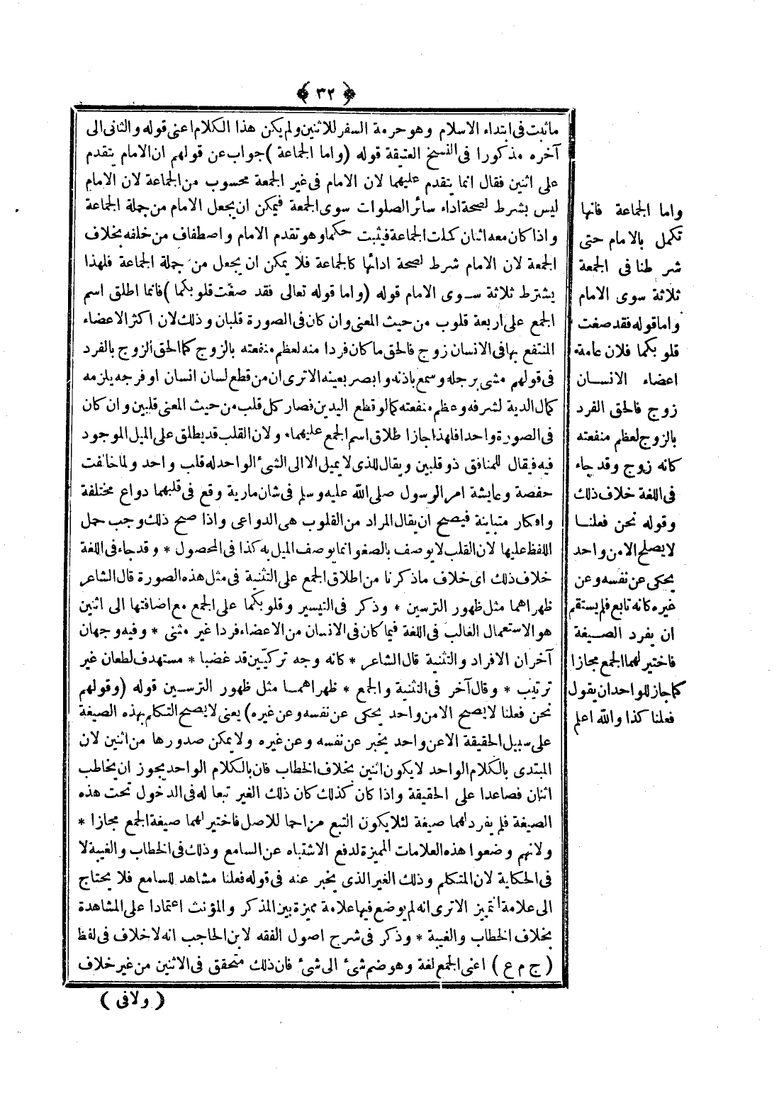 وَأَمَّا الْجَمَاعَةُ فَإِنَّهَا تَكْمُلُ بِالْإِمَامِ حَتَّى شَرَطْنَا فِي الْجُمُعَةِ ثَلَاثَةً سِوَى الْإِمَامِ وَأَمَّا قَوْلُهُ {فَقَدْ صَغَتْ قُلُوبُكُمَا} [التحريم: 4] فَلِأَنَّ عَامَّةَ أَعْضَاءِ الْإِنْسَانِ زَوْجٌ فَالْحَقُّ الْفَرْدُ بِالزَّوْجِ لِعِظَمِ مَنْفَعَتِهِ كَأَنَّهُ زَوْجٌ وَقَدْ جَاءَ فِي اللُّغَةِ خِلَافُ ذَلِكَ وَقَوْلُهُ نَحْنُ فِعْلُنَا لَا يَصْلُحُ إلَّا مِنْ وَاحِدٍ يَحْكِي عَنْ نَفْسِهِ وَعَنْ غَيْرِهِ كَأَنَّهُ تَابِعٌ فَلَمْ يَسْتَقِمْ أَنْ يُفْرِدَ الصِّيغَةَ فَاخْتِيرَ لَهُمَا الْجَمْعُ مَجَازًا كَمَا جَازَ لِلْوَاحِدِ أَنْ يَقُولَ فَعَلْنَا كَذَا وَاَللَّهُ أَعْلَمُ