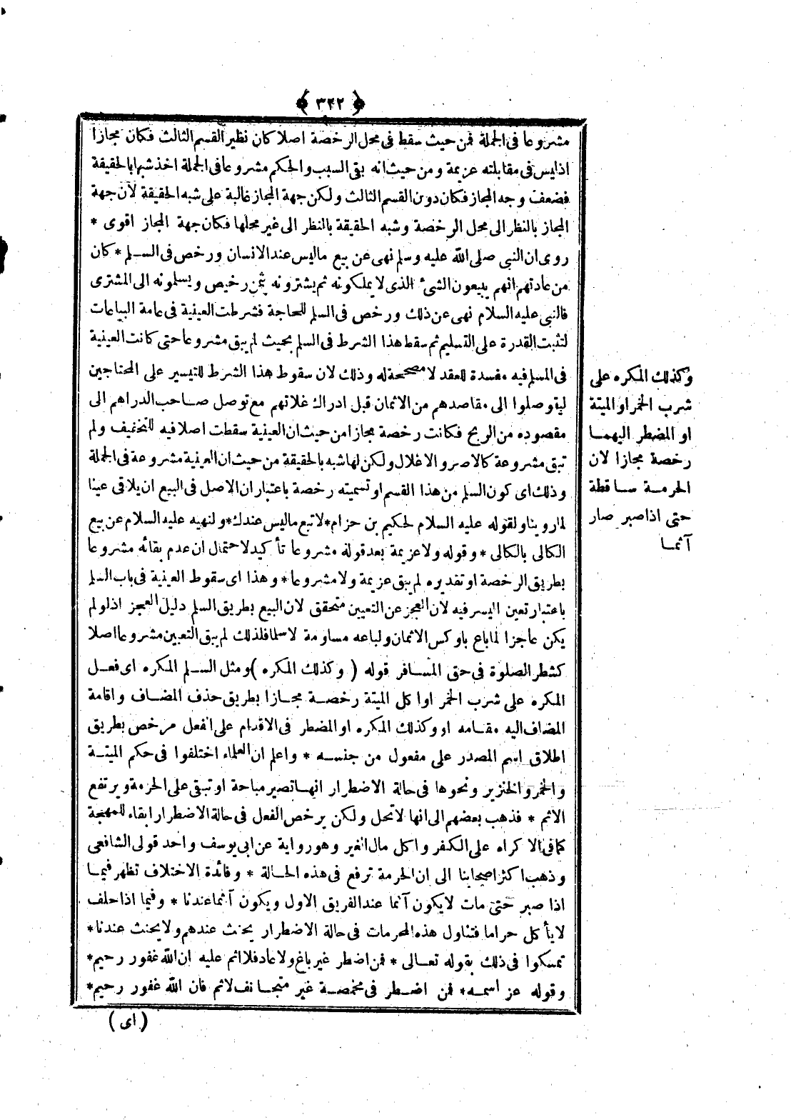 وَقَوْلُهُ، وَلَا عَزِيمَةَ بَعْدَ قَوْلِهِ مَشْرُوعًا تَأْكِيدًا لِاحْتِمَالِ أَنَّ عَدَمَ بَقَائِهِ مَشْرُوعًا بِطَرِيقِ الرُّخْصَةِ أَوْ تَقْدِيرُهُ لَمْ يَبْقَ عَزِيمَةً، وَلَا مَشْرُوعًا.، وَهَذَا أَيْ سُقُوطُ الْعَيْنِيَّةِ فِي بَابِ السَّلَمِ بِاعْتِبَارِ تَعَيُّنِ الْيُسْرِ فِيهِ؛ لِأَنَّ الْعَجْزَ عَنْ التَّعْيِينِ مُتَحَقِّقٌ؛ لِأَنَّ الْبَيْعَ بِطَرِيقِ السَّلَمِ دَلِيلُ الْعَجْزِ إذْ لَوْ لَمْ يَكُنْ عَاجِزًا لَمَا بَاعَ بِأَوْكَسِ الْأَثْمَانِ، وَلَبَاعَهُ مُسَاوَمَةً لَا سَلَمًا فَلِذَلِكَ لَمْ يَبْقَ التَّعْيِينُ مَشْرُوعًا أَصْلًا كَشَرْطِ الصَّلَاةِ فِي حَقِّ الْمُسَافِرِ قَوْلُهُ (وَكَذَلِكَ الْمُكْرَهُ) ، وَمِثْلُ السَّلَمِ الْمُكْرَهُ أَيْ فِعْلُ الْمُكْرَهِ عَلَى شُرْبِ الْخَمْرِ أَوْ أَكْلِ الْمَيْتَةِ رُخْصَةٌ مَجَازًا بِطَرِيقِ حَذْفِ الْمُضَافِ، وَإِقَامَةِ الْمُضَافِ إلَيْهِ مَقَامَهُ أَوْ كَذَلِكَ الْمُكْرَهُ أَوْ الْمُضْطَرُّ فِي الْإِقْدَامِ عَلَى الْفِعْلِ مُرَخَّصٌ بِطَرِيقِ إطْلَاقِ اسْمِ الْمَصْدَرِ عَلَى مَفْعُولٍ مِنْ جِنْسِهِ.