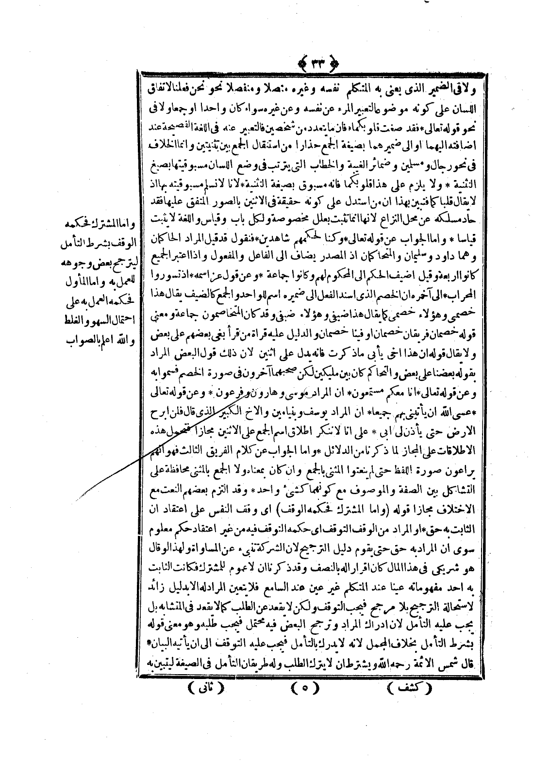 وَأَمَّا الْمُشْتَرَكُ فَحُكْمُهُ الْوَقْفُ بِشَرْطِ التَّأَمُّلِ لِيَتَرَجَّحَ بَعْضُ وُجُوهِهِ لِلْعَمَلِ بِهِ وَأَمَّا الْمُؤَوَّلُ فَحُكْمُهُ الْعَمَلُ بِهِ عَلَى احْتِمَالِ السَّهْوِ وَالْغَلَطِ وَاَللَّهُ أَعْلَمُ بِالصَّوَابِ.